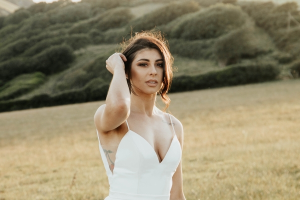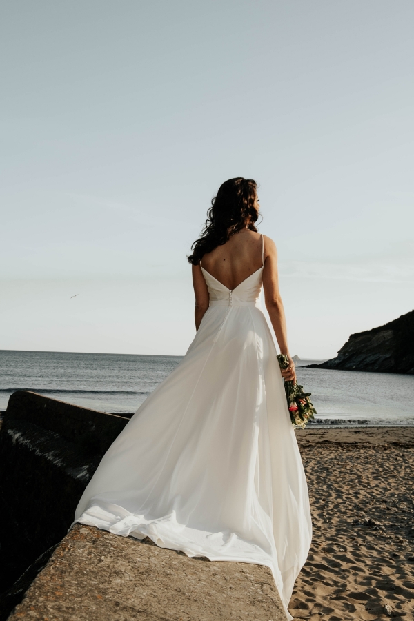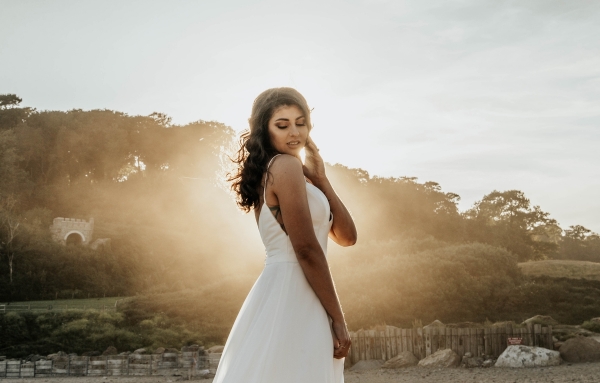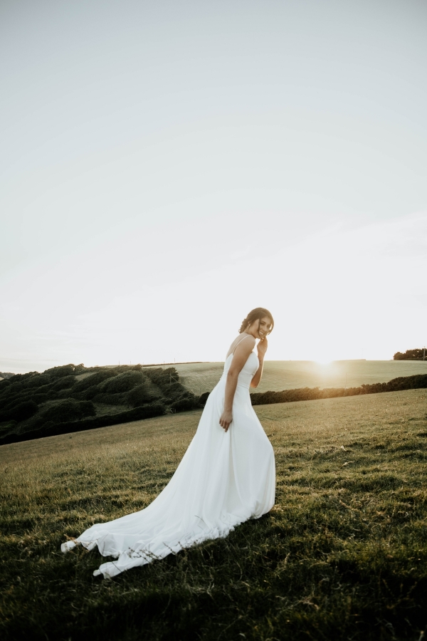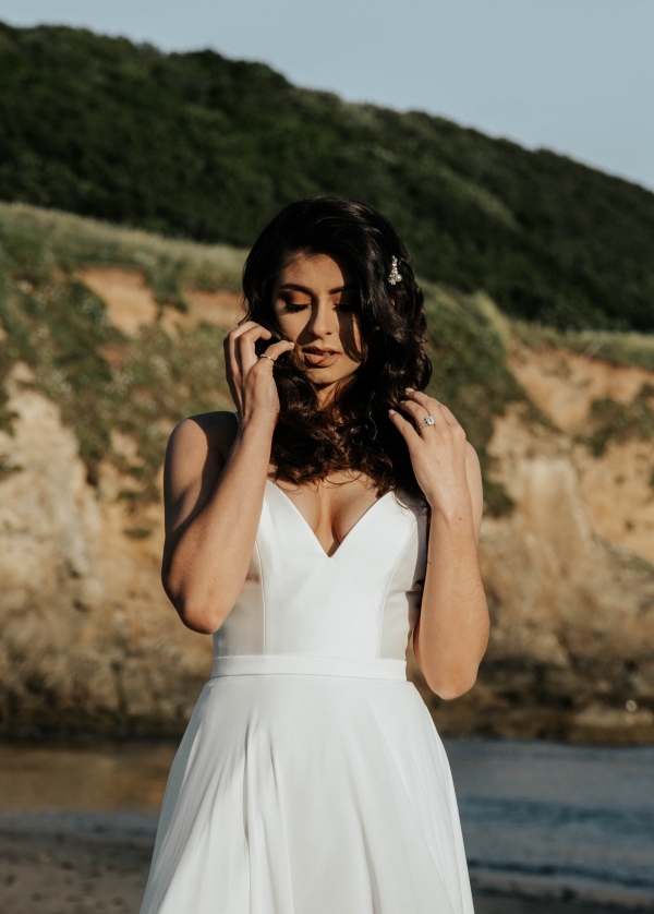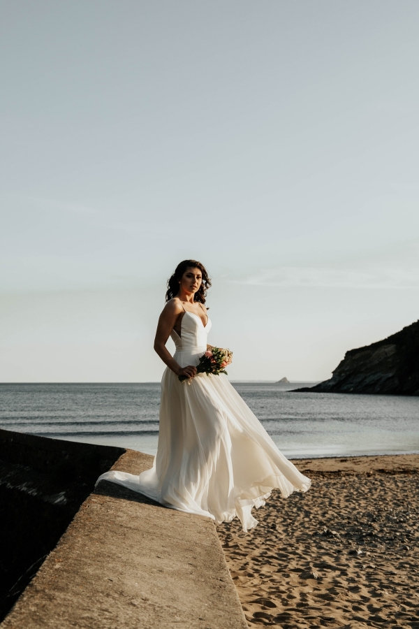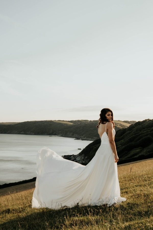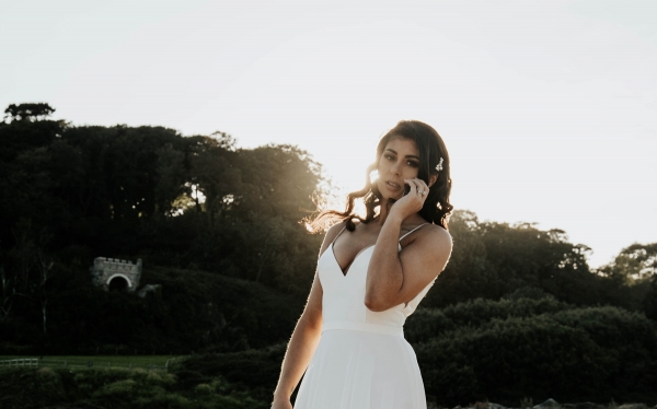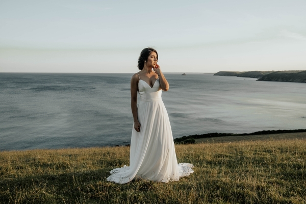 This photo shoot is the epitome of simple elegance, marrying an exquisite gown with an alluring mixture of rural and oceanic surrounds for a scene that spells pure romance.