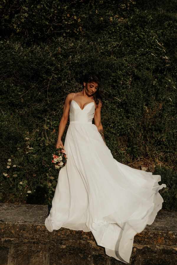 Shot by photographer Jessica Apps, it features one of Elaine Rawlings Bridal's hot-off-the-catwalk styles from Sincerity Bridal, aptly named 'Summer'. The uber elegant chiffon design features a mikado bodice with illusion cut outs that - along with its form-flattering A-line silhouette - gives brides a bang on-trend look while maintaining a timelessly classic aesthetic.
