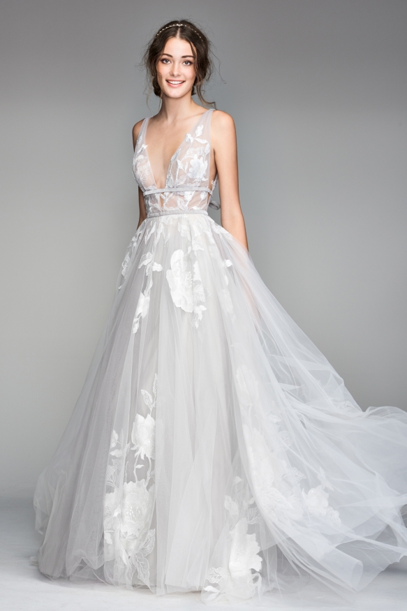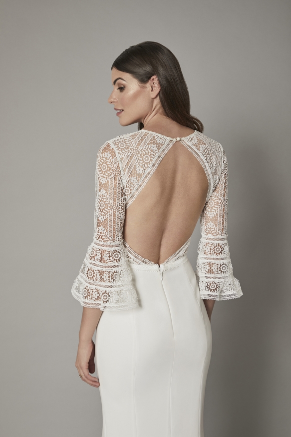 Portrait backs have been a staple on the bridal scene for a number of seasons now, but open backs are becoming more statement with low V-backs, U-cuts, triangles and embellished circles. Sheer lace, bows, beading, embroidery, floral detail and embellishments such as crystals can all be incorporated to increase the bespoke factor, allowing you to tailor the trends to match your own style personality.