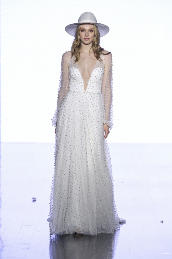 Suited to all styles, whether you wish to rock fairytale with a voluminous skirt and cascading train paired with a plunge; channel regal glamour with long sleeves, a cape and a daring low neckline, or rev up the wow factor of an ornate metallic or coloured gown with a plunge, it is the neckline to pursue.