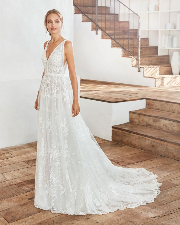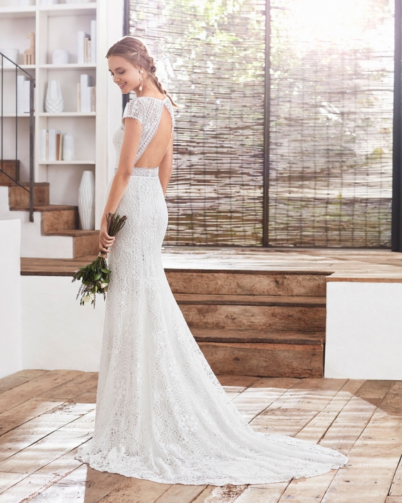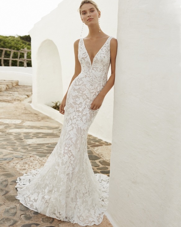 Fit and flare is all the rage for a reason. Accentuating the female hourglass form, it oozes sensuality and romance, while suiting all settings and styles of wedding.From trumpet mermaids with tiered tulle trains to fluted petal-strewn skirts and fishtail backs leading into chapel-length trains, the silhouette can be as simple or striking as you desire.