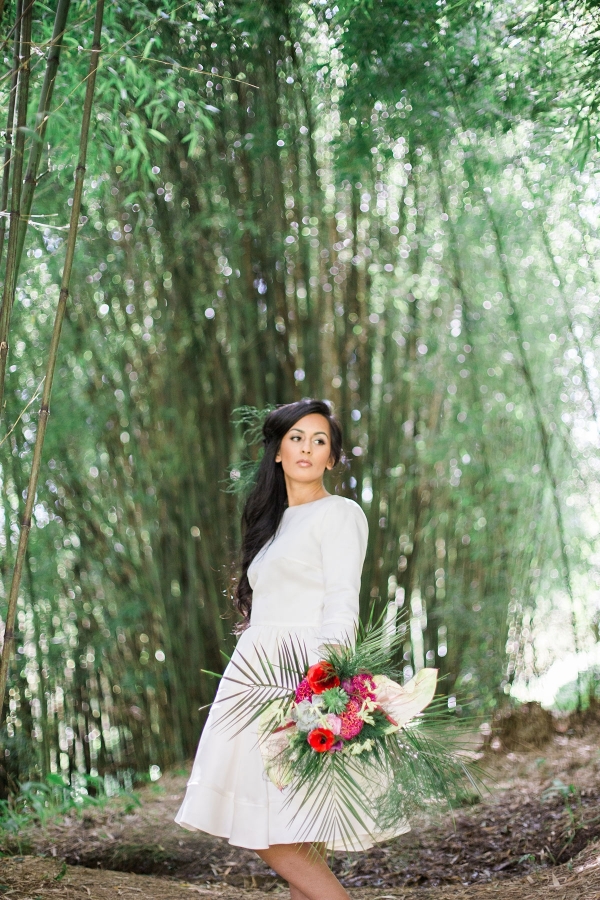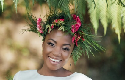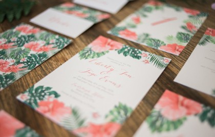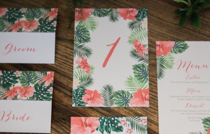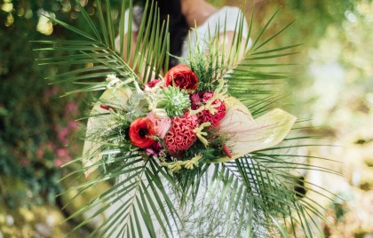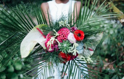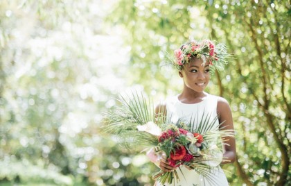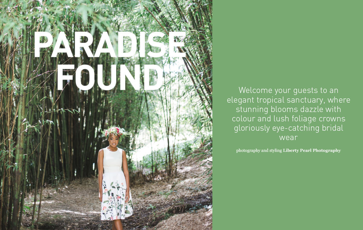 Welcome your guests to a gorgeously elegant tropical sanctuary, where stunning blooms dazzle with colour and lush foliage crowns gloriously eye-catching bridalwear