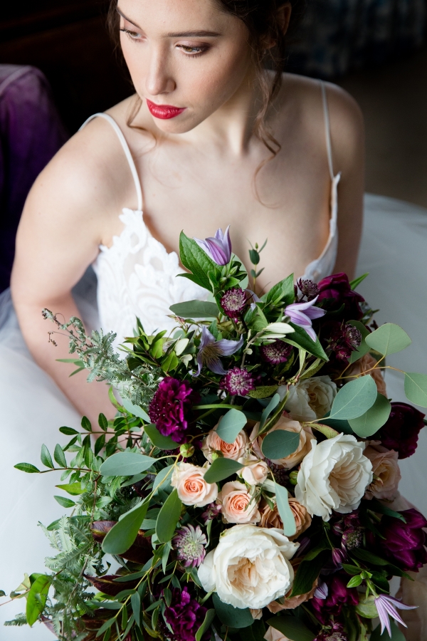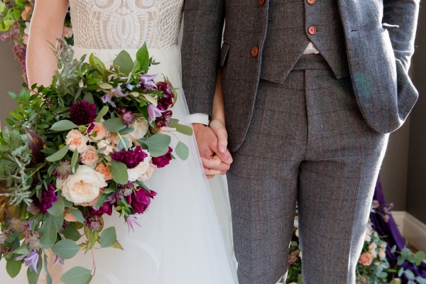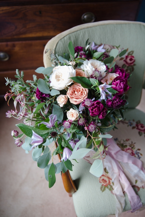 "I wanted to create something totally different, new and exciting," says Helen Hopkins of Pudding Bridge, who organised the shoot. "The scheme includes garnets, plums and soft pinks with luxurious textures of velvet, leather, silk and tweed. I had a vision of it being wild and opulent, yet laid-back.".jpg)