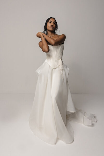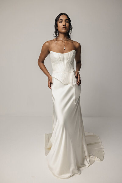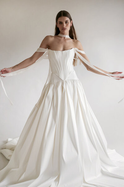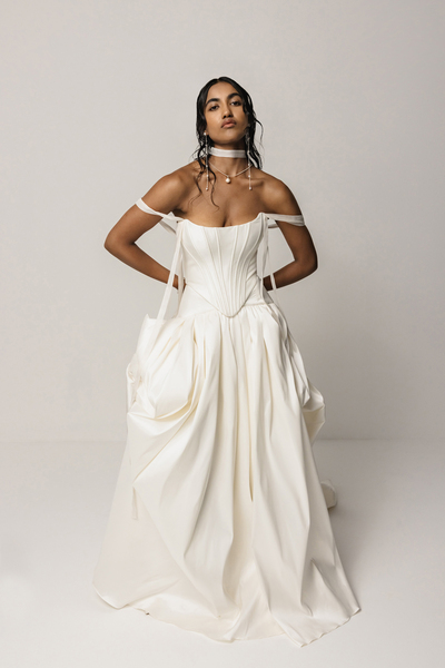 A sister brand to Rue De Seine, Saint Bridal is rooted in French artistry and the timeless allure of Saint-Germain-des-Prés. Think effortless Parisian charm fused with couture craftsmanship – luxury with a touch of accessibility. The collection spans a wide spectrum of silhouettes, mix-and-match accessories and price points, offering something for every bride. A selection of gowns are now available at St Ives Bridal Boutique.