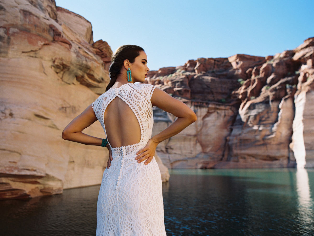 Extend the sense of drama with a portrait back (especially if lace trimmed) or a romantic sweetheart or keyhole bodice, whose bold outlines accentuate the natural curvature of the body for an ultra feminine fit.