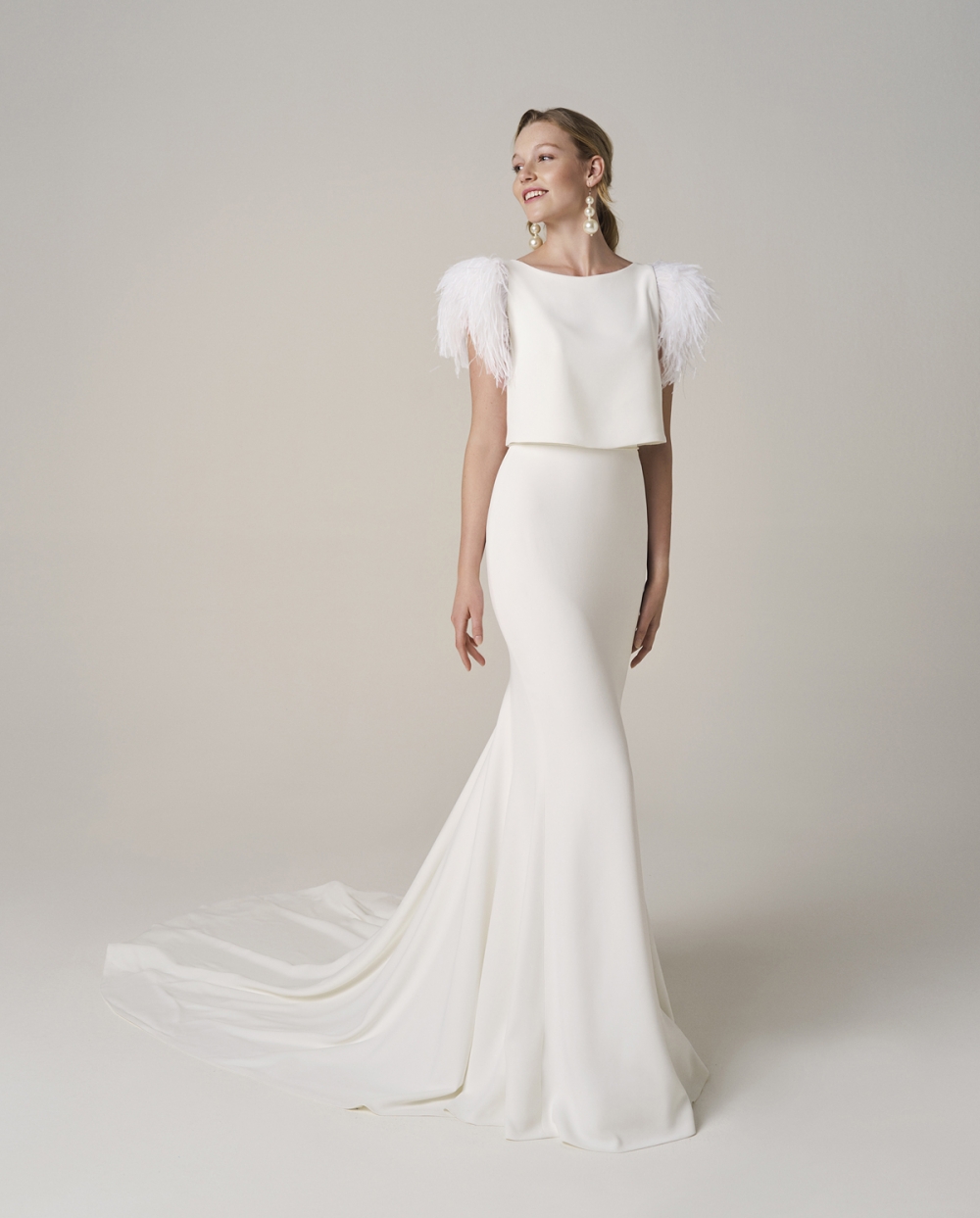 If you're not sure of how 'big' to go, there's plenty of more toned down versions to add the idea of volume to your outfit. It could be a back bustle or an accentuated flare at the base of a fishtail, elegant drapery caught by the breeze, piece of plumage, extra long veil or starched cape that lifts your bridal ensemble toward contemporary couture.