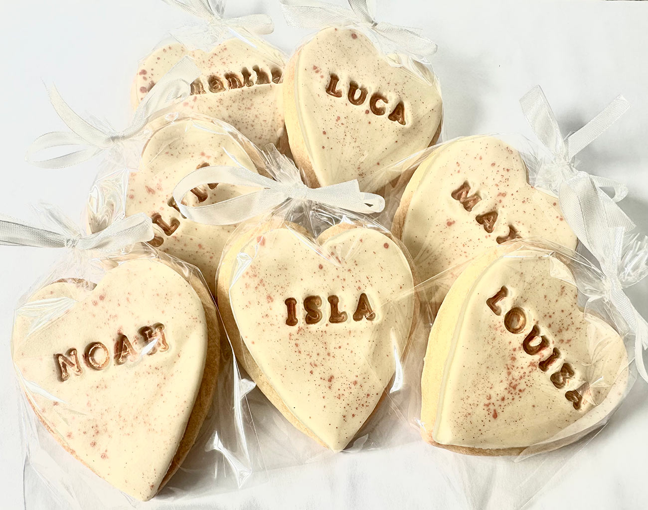 Sweet favours always go down a storm at weddings, so why not add an irresistible iced biscuit to each place setting? Choose icing in hues to match your colour scheme and emboss each biscuit with your (or each guest’s) initials and wedding date for a personal touch. Your wedding cake maker might be able to make the biscuits for you, wrapping each one individually to keep them fresh.