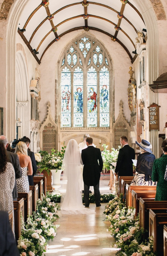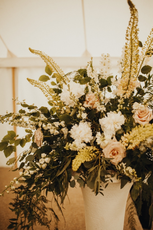 Up the botanical ante by adding a few beautiful blooms with just a touch of colour, or inject jewel tones or rich autumnal shades for bright or rustic themed floristry. White and green is one of the most striking and classic colour schemes and can be adapted to individually suit, from dark forest green and ivory to cream and sage; think delicate displays featuring ivy and gypsophilia or dramatic hanging centrepieces and overflowing tabletop garlands of greenery mixed with lavender flowers.