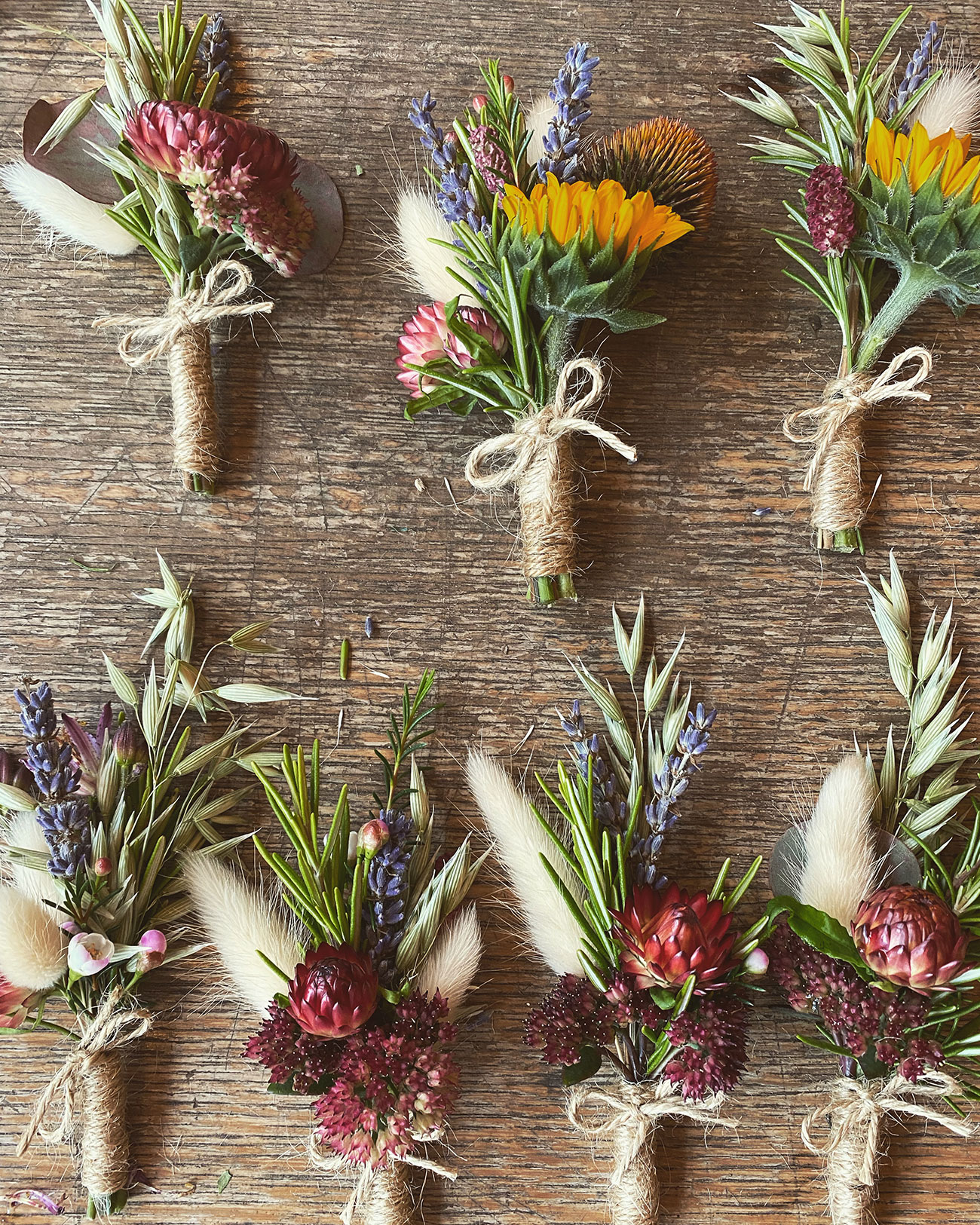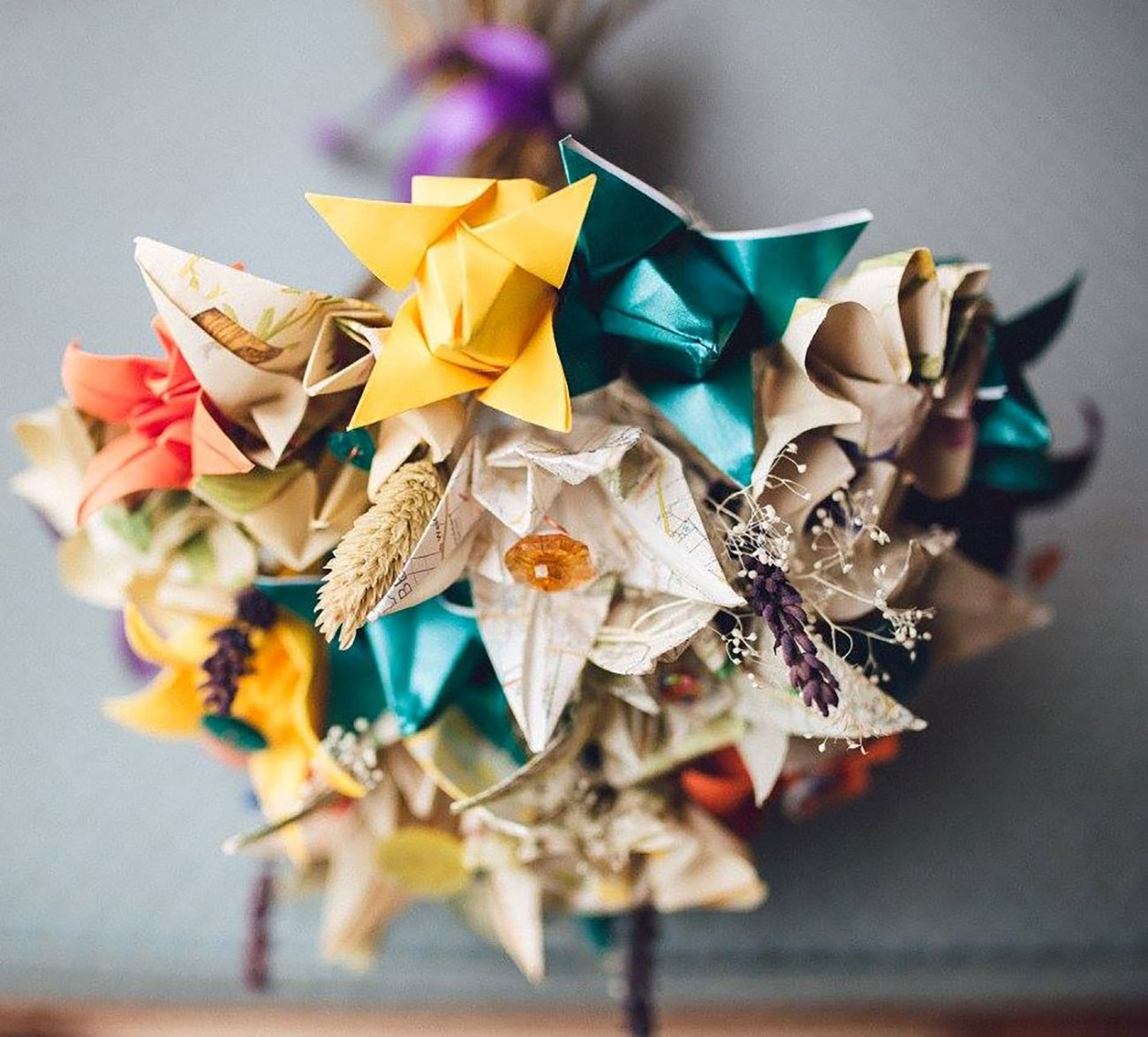 For flowers that won’t die days after your wedding, there are options that are just as beautiful or striking as a fresh bouquet. The Paper Florist uses origami flowers as a striking alternative to real flowers, meaning everything from the size and colour can be selected to brighten your bridal ensemble or wedding décor. Or you may choose boho-chic dried flowers, which are long-lasting and can be displayed in a vase for some time after the wedding. Devon-based Dried Designs offers everything from bouquets and buttonholes to large installations and arbour florals.