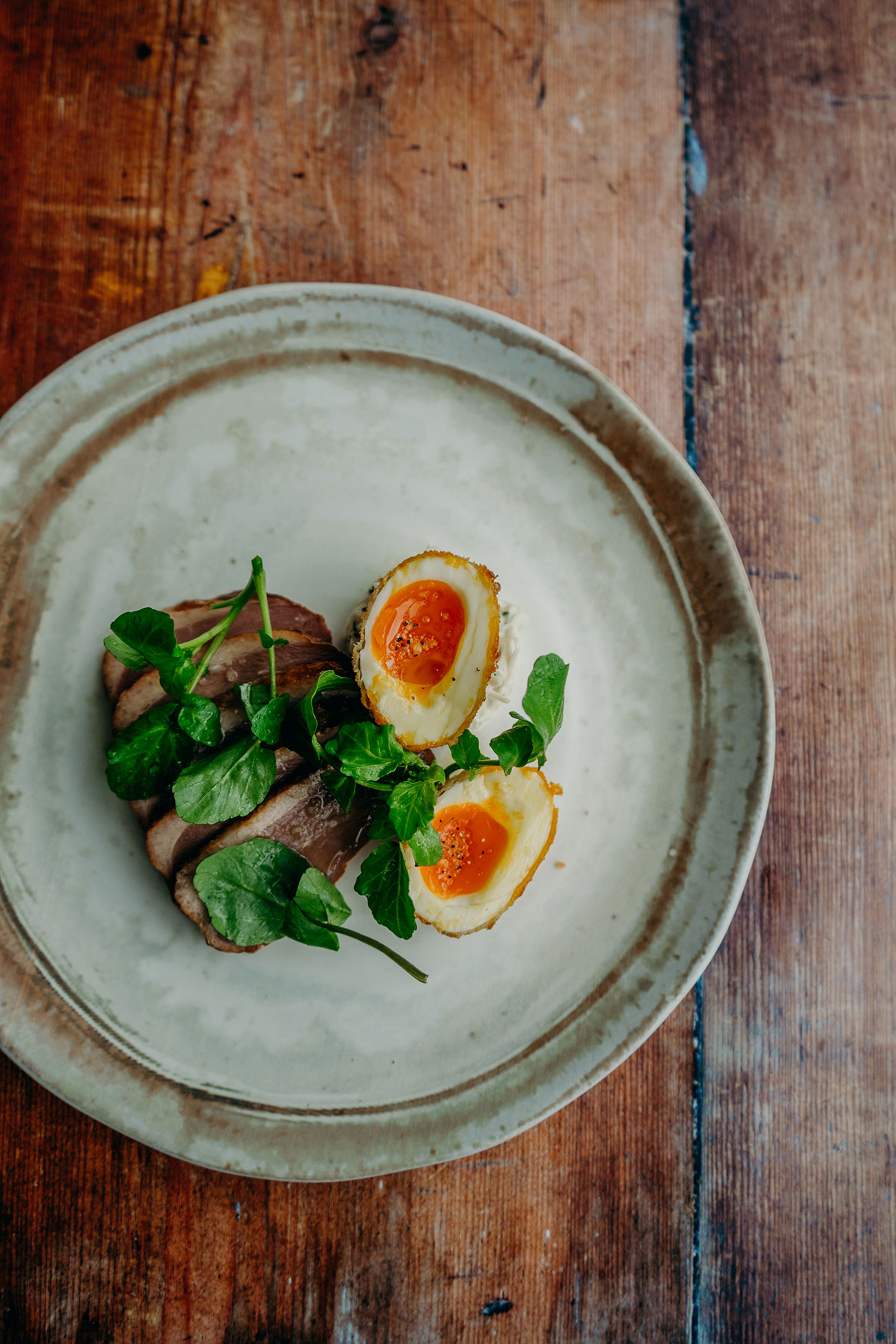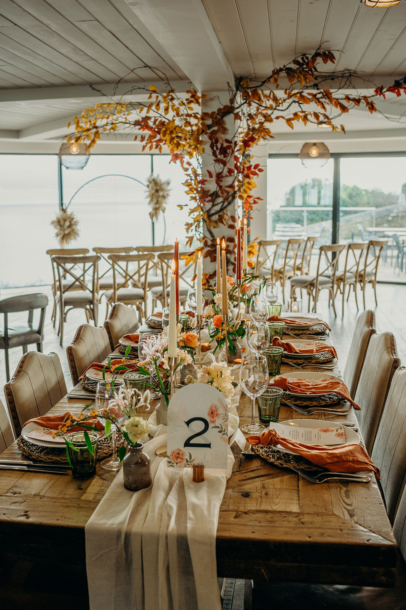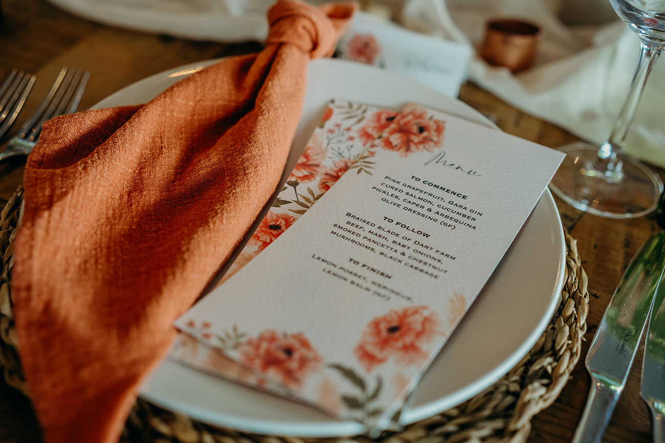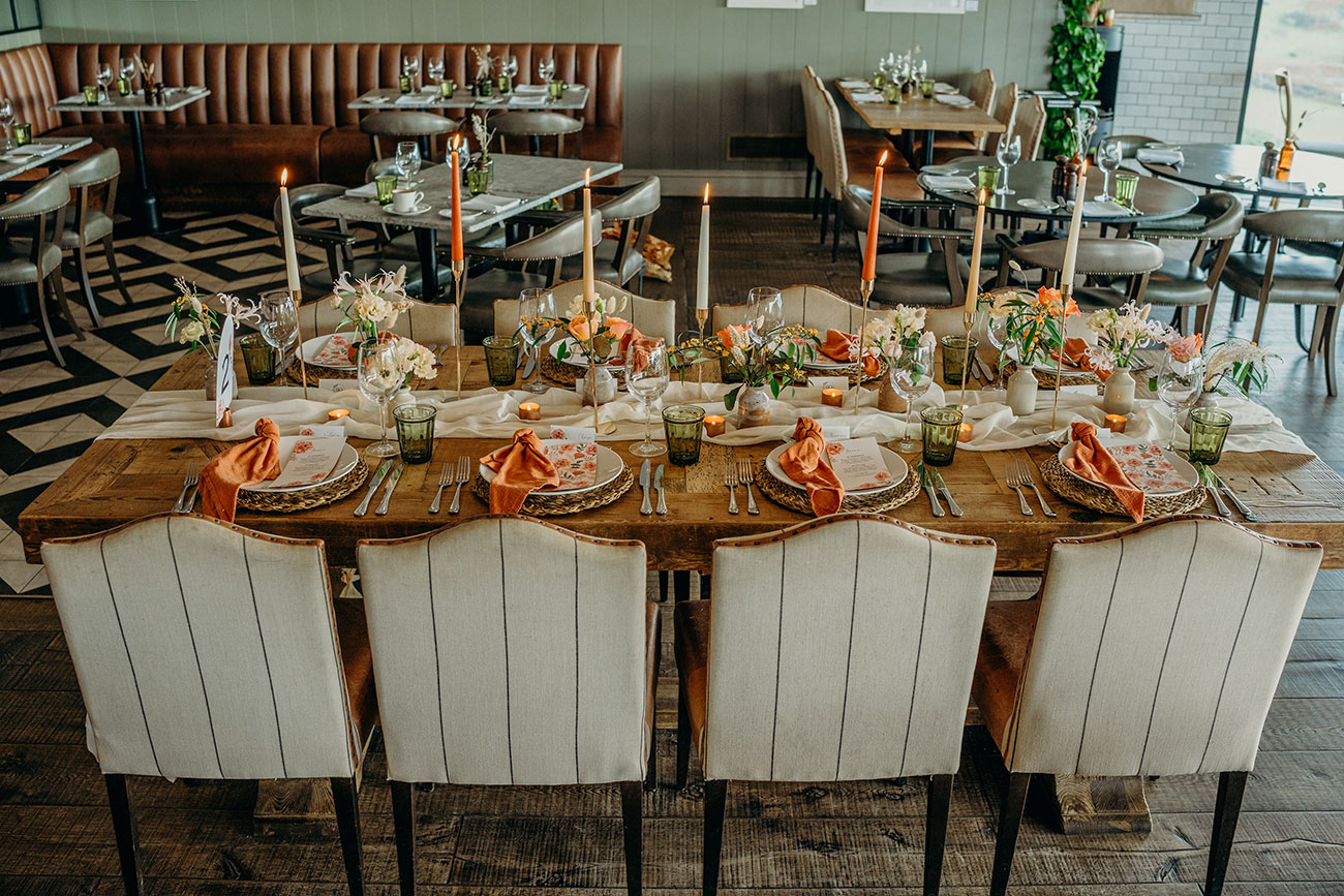 The surrounding landscape was the starting point for the styling. “The shoot was inspired by the hotel’s signature style, using natural textures and its soft, earthy colour palette,” explains Simone Burchell of Gara Rock Hotel. “Inspiration was taken from the beautiful surroundings by using classic oatmeal, deep browns, muted greens, burnt oranges and pops of ochre yellows and sea blues. The result is a luxurious feel that oozed warmth and indulgence.”