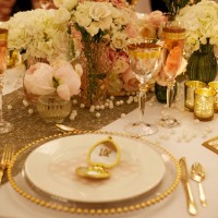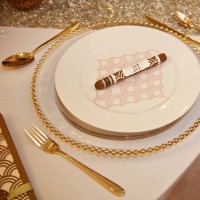 Exquisite essentials. Don't think about the essentials and styling in isolation - especially if you're short on space - as these elements help to set the tone of the day. Hiring or buying glassware, linen and crockery to fit with your design concept will instantly raise the style stakes. Opt for colours that complement your colour palette, or focus on the setting or theme of your day and think about how you can reflect it through those essentials. For example, wooden charger plates are perfect for a rustic woodland setting, nautical striped napkins tied with rope in a sailor's knot are ideal for a coastal location and, for a Great Gatsby styled affair, gold-rimmed tableware with glass gold beaded charger plates will create the perfect mood of decadence and elegance.