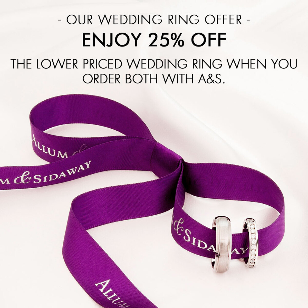 Allum & Sidaway have a budget-friendly solution with their latest bridal promotion! Order both of your wedding rings and get 25% off the lower priced ring.
