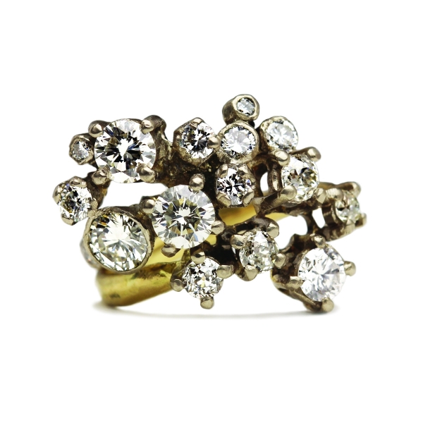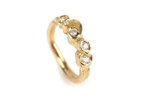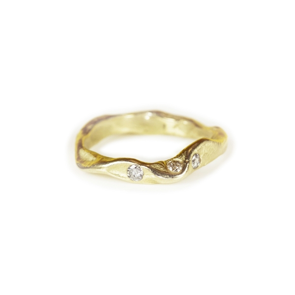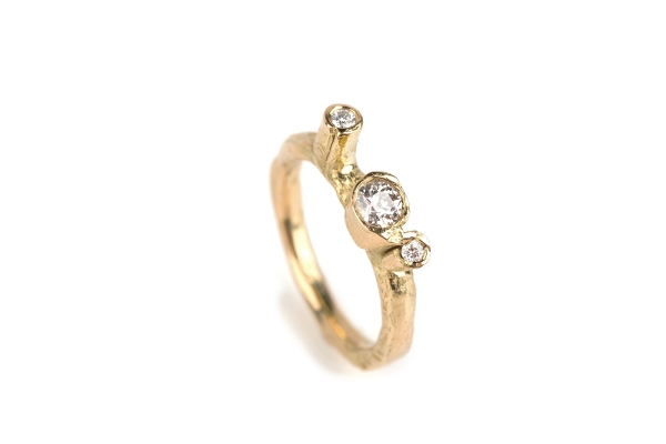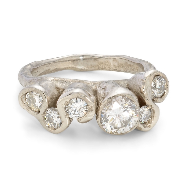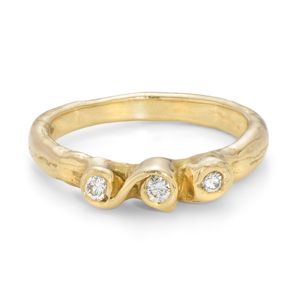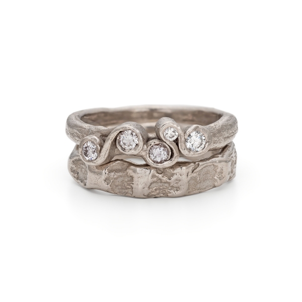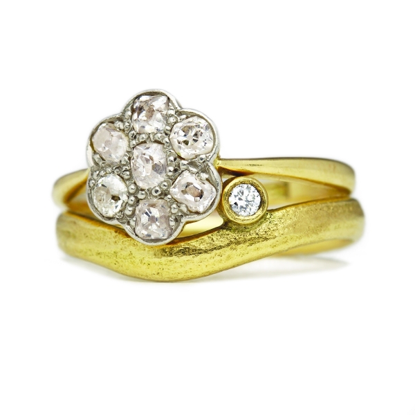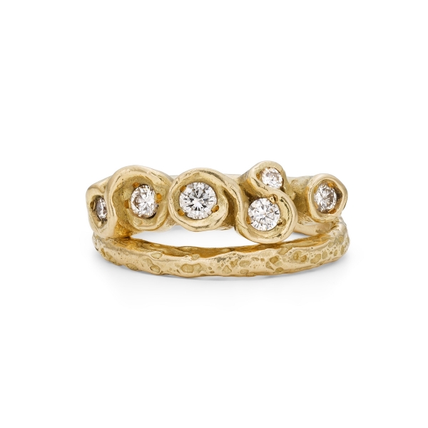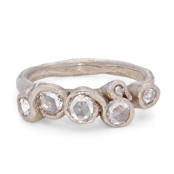 The cut of the diamond can also marry a modern aesthetic with timeless style. Rose cut stones, for example, which are flat along the bottom with a dome-shaped top, are a growing trend. "These rose cut diamond rings hark back to Victorian era romance. There is an elegance to these gemstones that is naturally stunning," says Chloe from Emily Nixon Jewellery. "Brilliant cut diamonds are still proving the most popular, however, either in engagement rings or studded in wedding bands. The combination of sparkling brilliant diamonds with the irregular organic design evokes Emily's style of natural luxury that is so sought after."