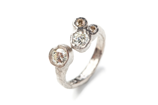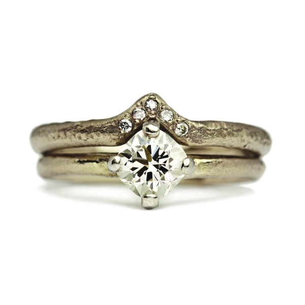 Some couples, for example, are moving away from white diamonds in favour of grey and brown tones. "Ranging from pale champagne through to dark chocolate in colour, brown diamonds are lovely alternatives to their classic white counterparts," says Jamila from Justin Duance Jewellery. "Our diamonds are untreated, meaning the colours are natural and vary from stone to stone. They are a perfect match with our ever-changing sandcast bands, the result is a truly unique ring - you will never find one quite the same!"
