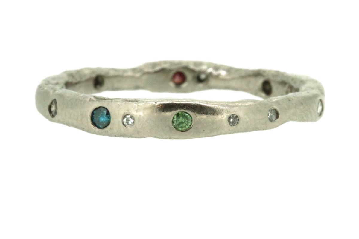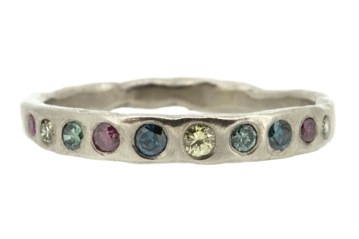 "Any of the rings can be set with a range of white or coloured diamonds," says Erin. "They can also be shaped to fit around an engagement ring, as well as hand-engraved with names, a date or a message."