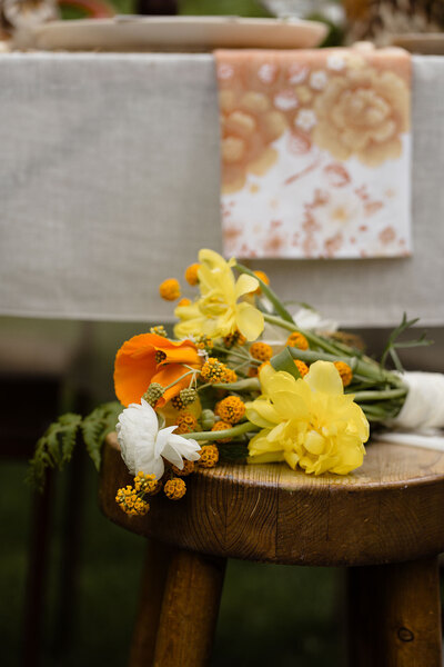“Everything we used was secondhand, borrowed or repurposed,” continues photographer Laurie of Laurie B Film and Photography. “From the clothing to the props, we sourced everything from charity shops, Vinted, car boot sales and flea markets. Even the flowers were grown in Jules’ garden and we foraged for other flowers and grasses to incorporate into the styling.”