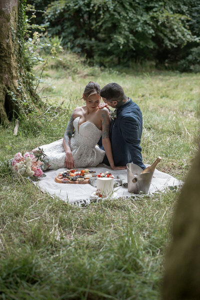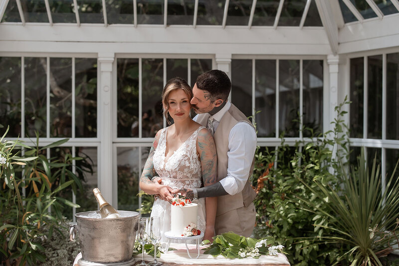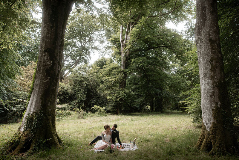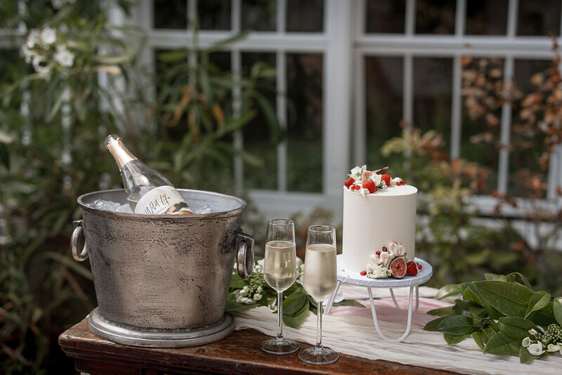 With so many scenic corners to choose from, the couple wander from a handfasting under a foliage-clad arbour to whispered vows beneath a tree adorned with flowing drapes, before retreating to the orangery to seal their promises. Roaming the grounds in their seasonal splendour, they share a quiet moment in the woods, cut a single-tier cake and raise a glass of fizz during a secluded picnic for two.