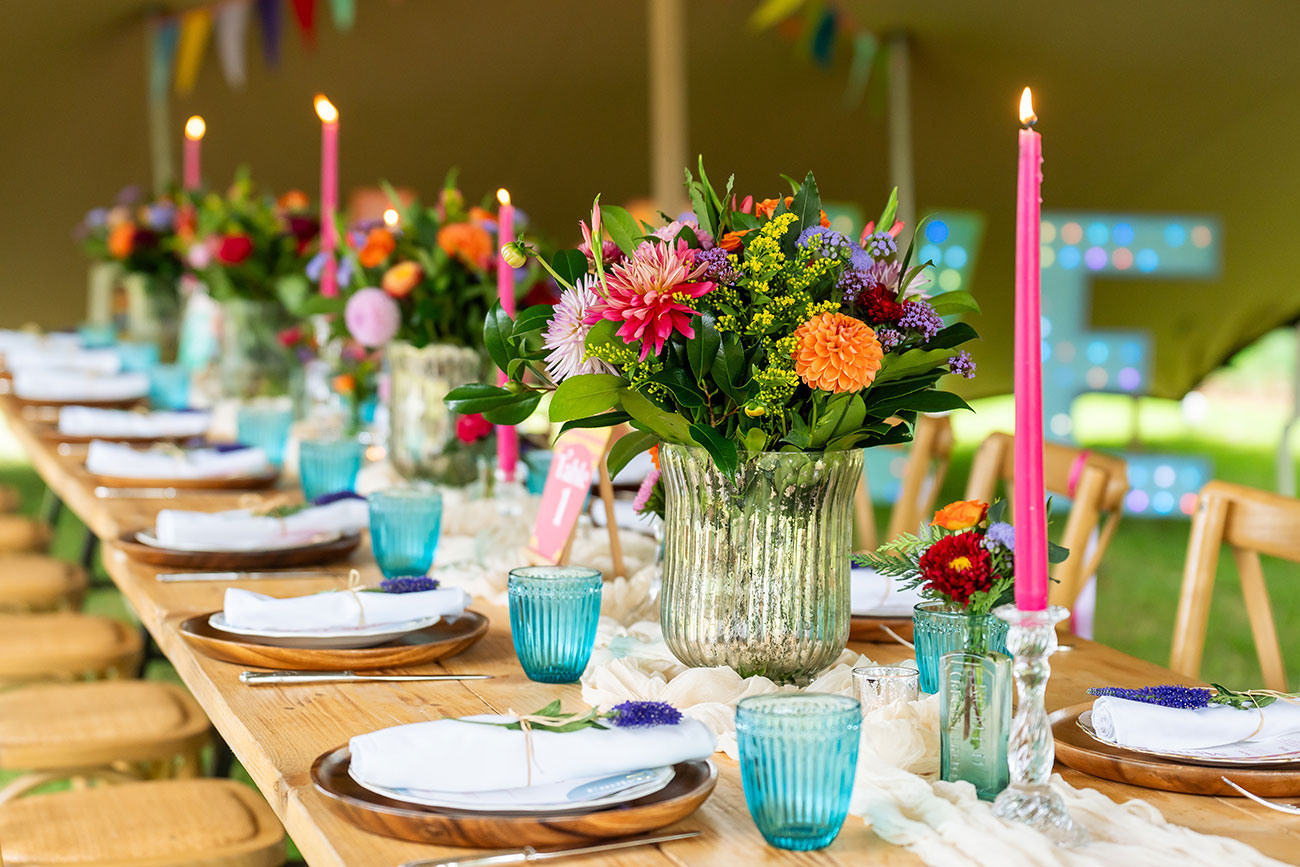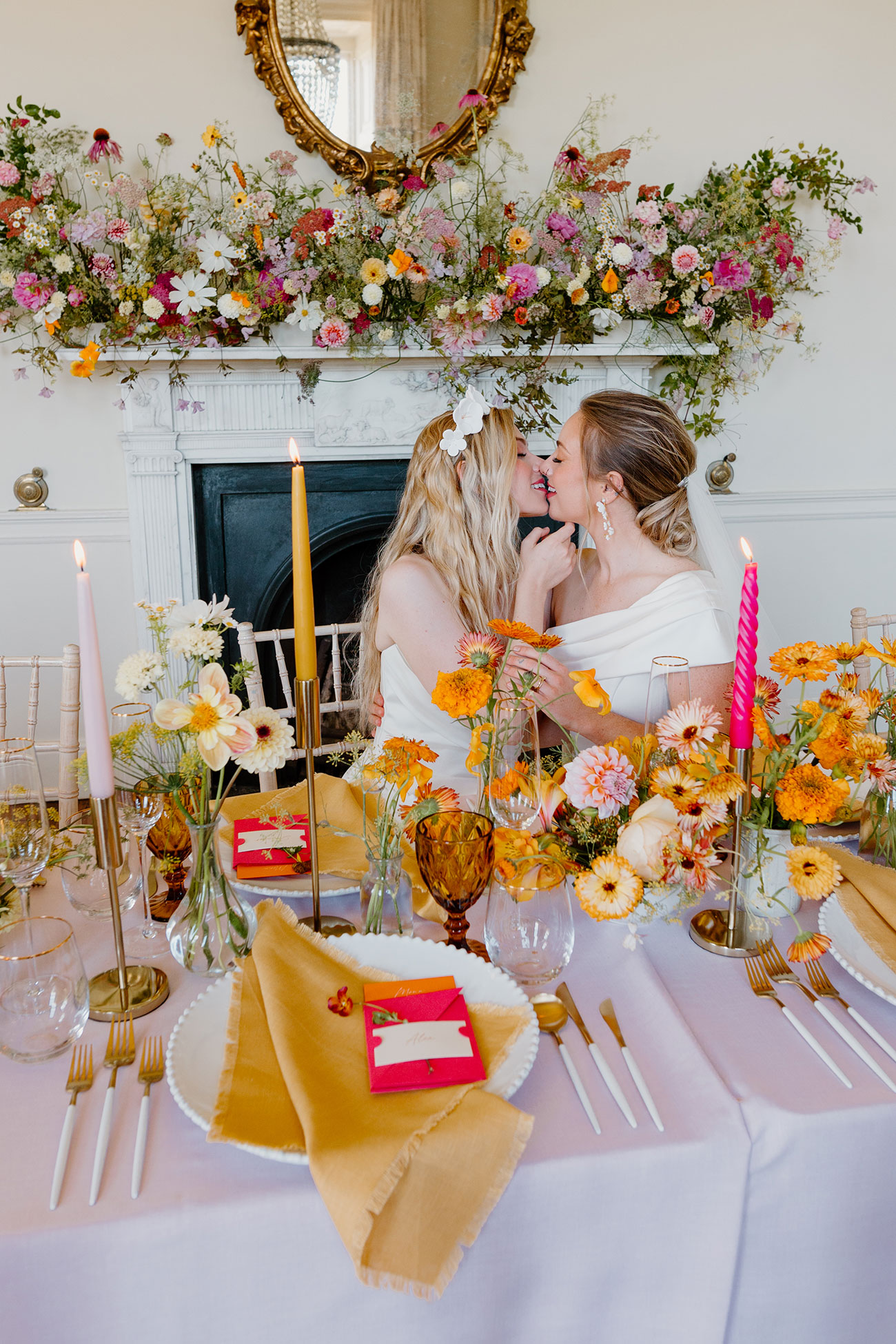 Colour is back and, going forward for 2025, we're going to see even more bright pops of colour - the brighter the better! Don't think anything of combining hot pinks, mustards and oranges with pale pinks and golds like we did for the Summer Punch styled shoot (images featured). The trick is to not feel afraid of lots of colour; it works in so many spaces. Just beause you're getting married in a manor house doesn't mean that your wedding has to be neutral and blend into the walls. The trick to using lots of colour is the same principle as always: pick a couple of shades as a base colour palette that you'll use more often and then add two or three accent colours which will just pop throughout the scheme.