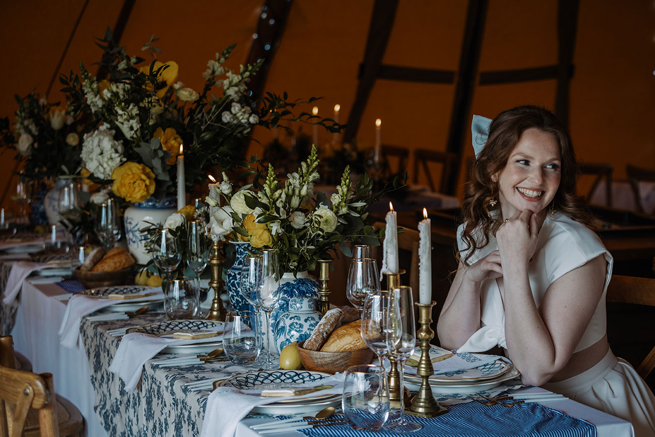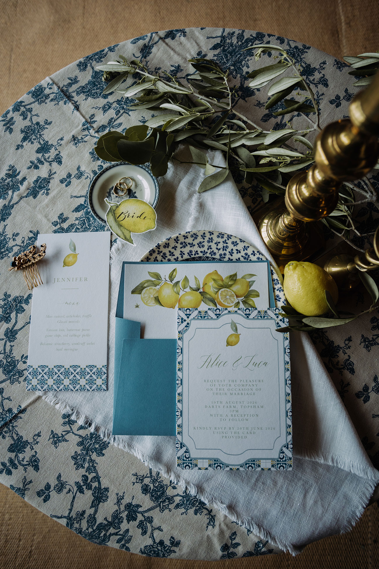 As with trends in interiors, clashing and mismatched patterns and a maximalist feel has been making its way into wedding trends too. The best way to go about this is to choose a colour scheme. In the case of our Amalfi Summer look (images featured), it's varying shades of blues, yellows and whites; clash patterns within that colour scheme so it doesn't look too much. For the Almafi shoot I clashed a blue and white stripe, blue chintz floral and a Mediterranean tile pattern also in blues.