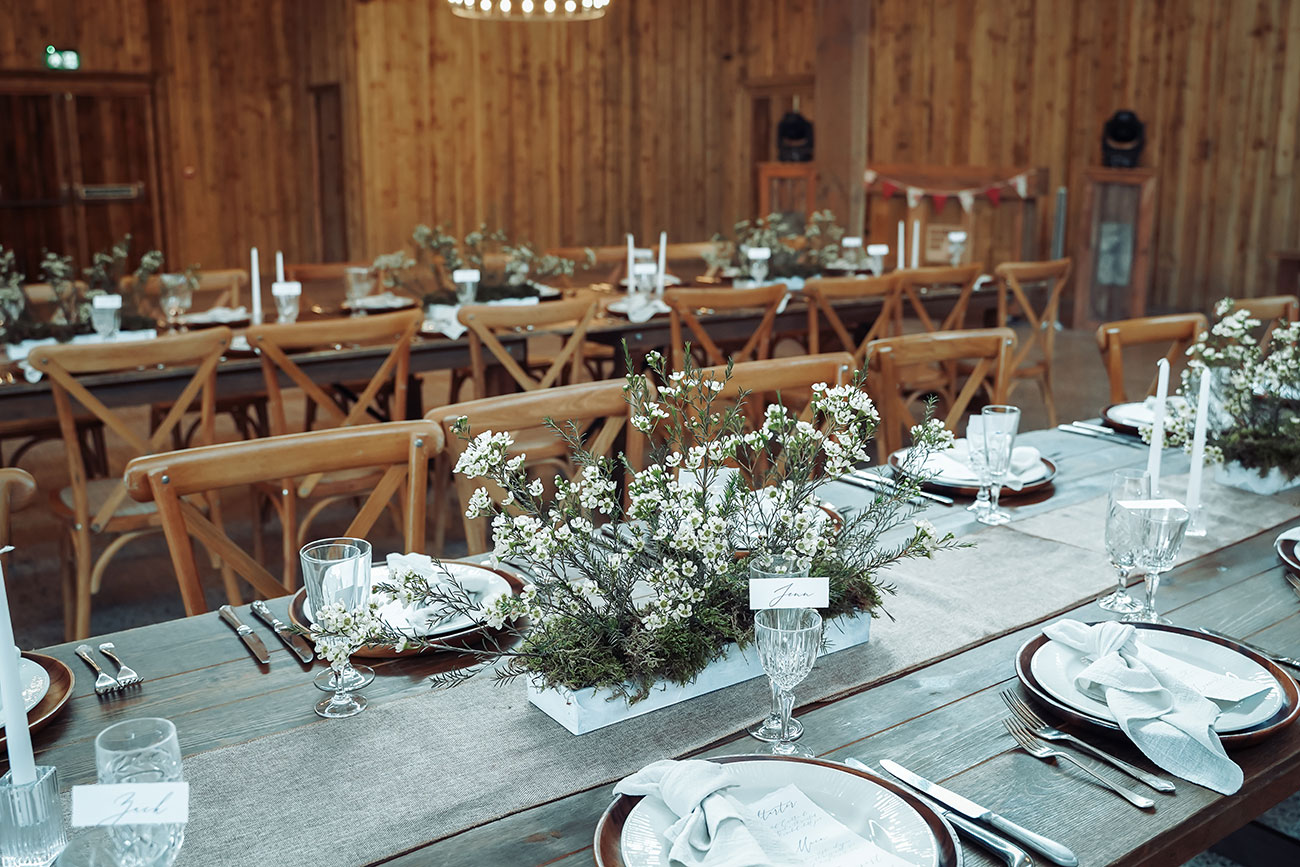 Fabric is back in a big way. But rather than fussy-looking swags of material or a ruched marquee ceiling, think more about elegant drapes, either hung from the ceiling or a backdrop and in a variety of colours rather than just ivory or white! Lots of venues, especially barns and tents, will have opportunities to create hanging displays that can help bridge the gap between your table décor and the ceiling height, making spaces feel more intimate and cosy.