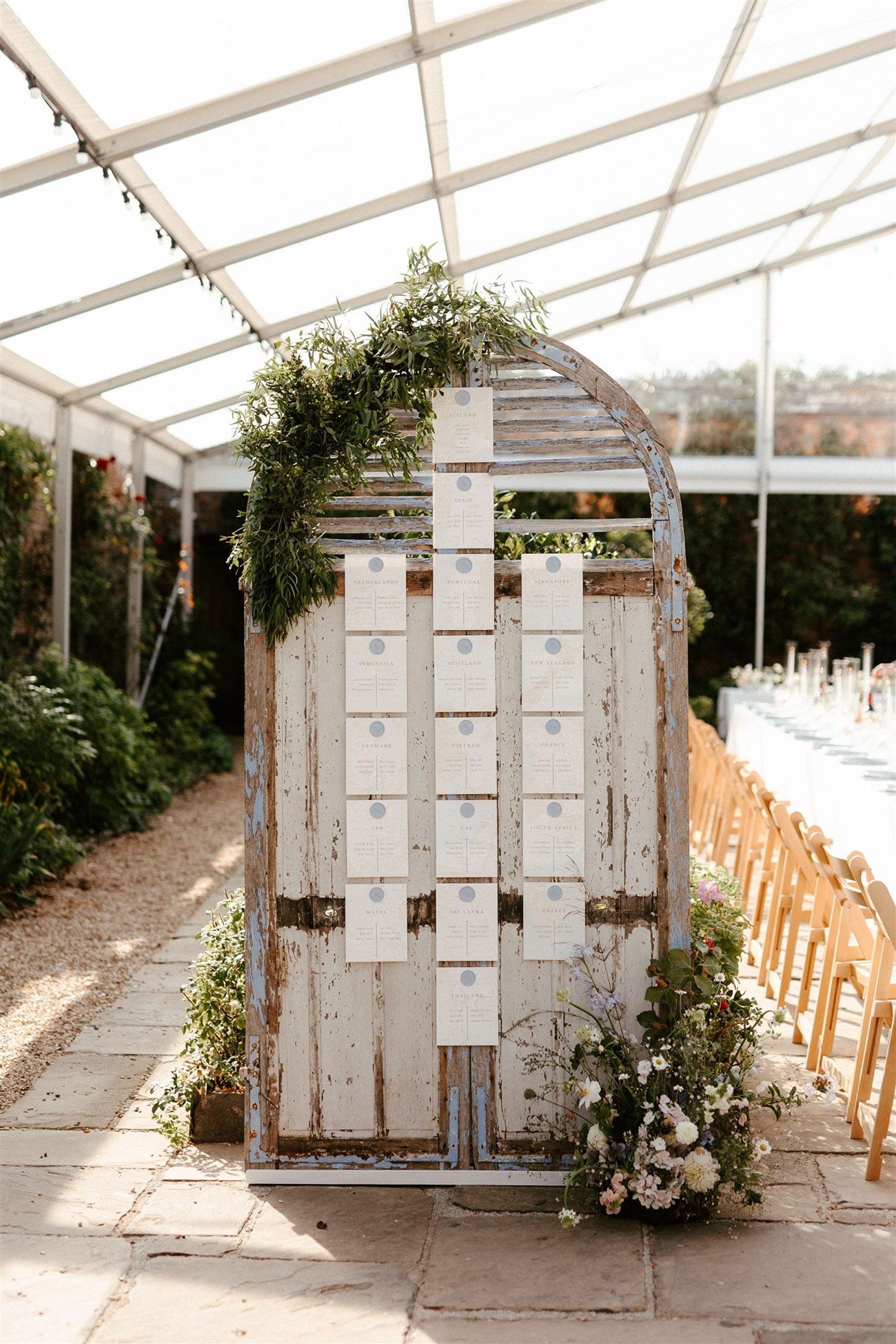 Rather than just a simple printed board, think outside the box when it comes to your seating plan for 2025! Use old shutters, like we did at Hayley & Mike's wedding (images featured) to hang individual tables on, or create bespoke displays on plinths, hang fabric table plans from frames or create a large escort card display rather than a single table plan. We're doing several plans this year with escort cards tied to champagne glasses and displayed on shelving and bespoke units.