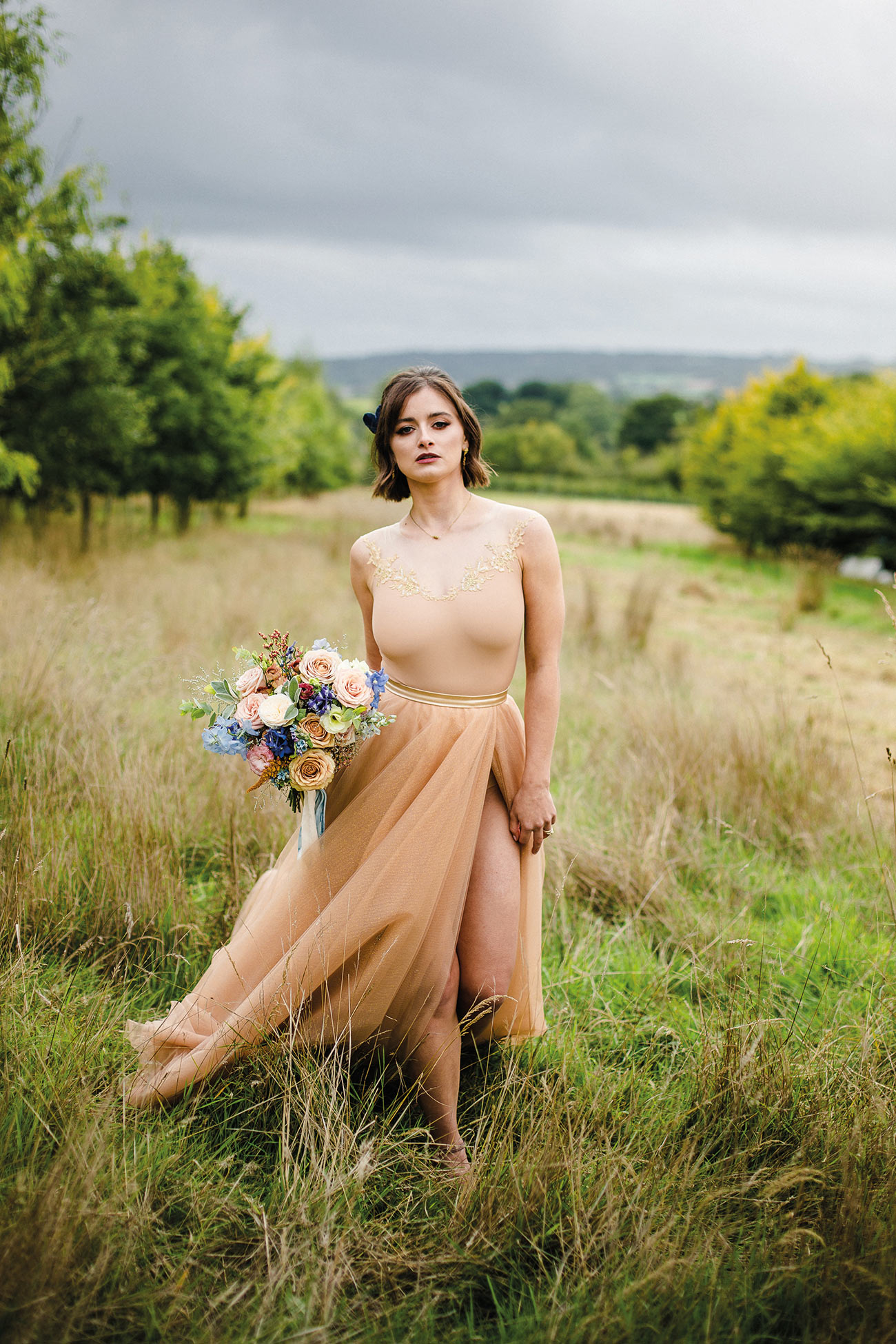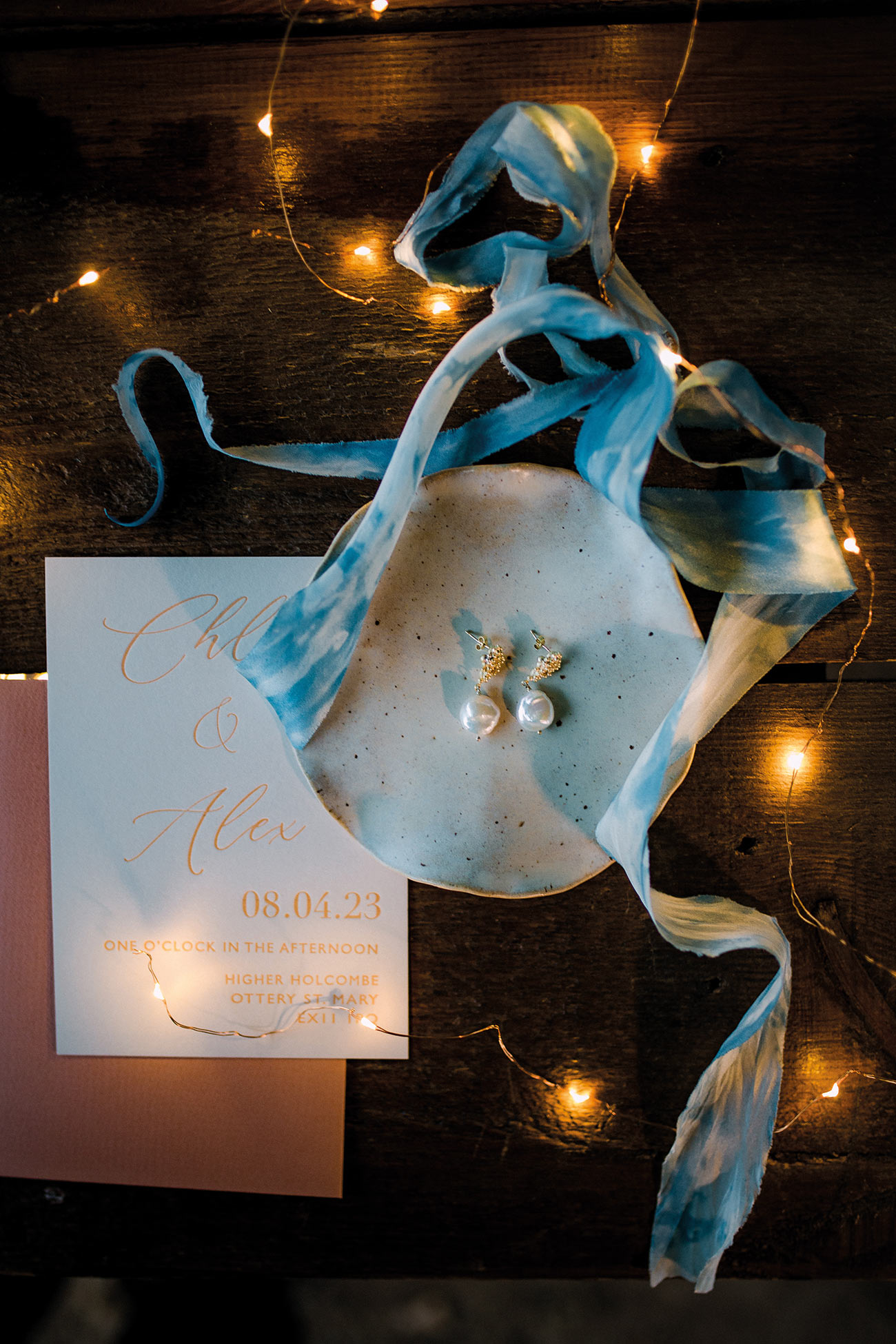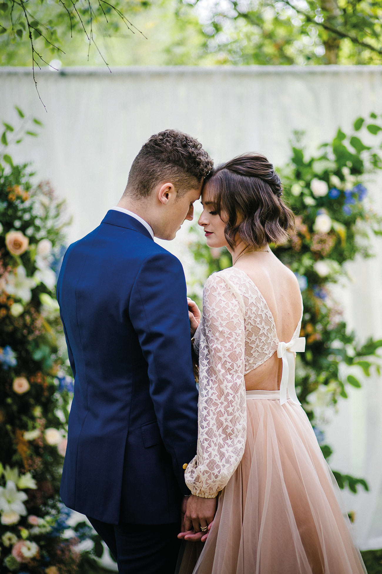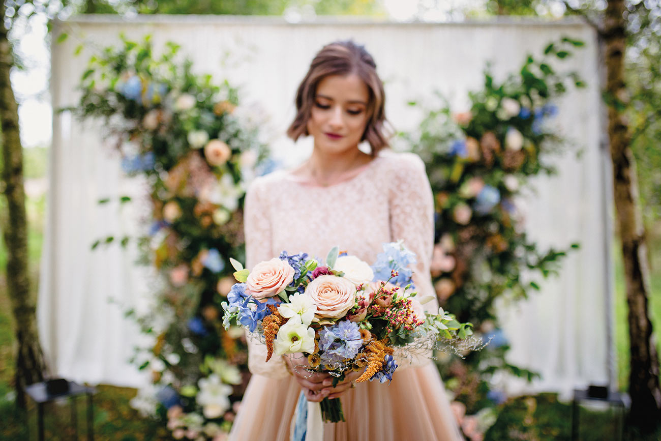 The smaller details, too, add to the endlessly romantic aesthetic, from the handcrafted granulated jewellery and elegant silks to the billowing sleeves of the bridal gown. Striking a luxe and gorgeously ethereal note, the shape of the ceremony backdrop creates the impression of the bird’s wings. Fabric draping along the aisle, together with a backdrop to accentuate the beauty of the wings, adds texture and depth to the glorious natural surroundings. The effect is oh-so beautiful: a slice of paradise in a tucked-away corner of Devon.
