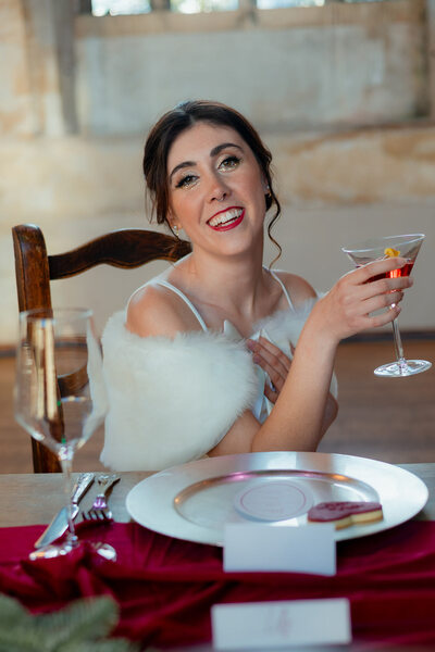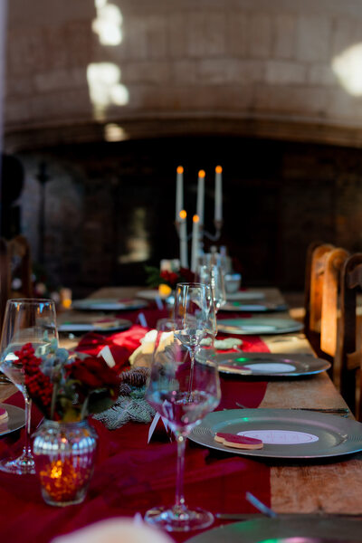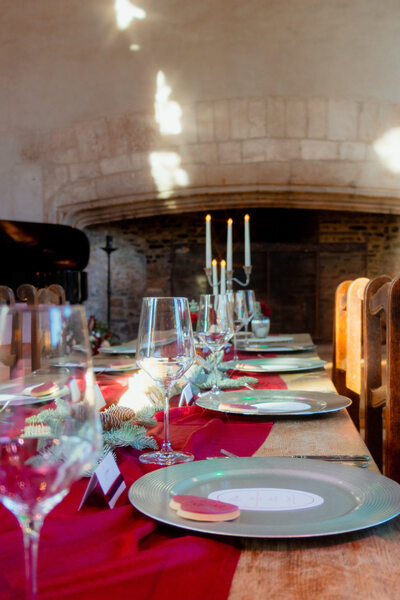 This festive-styled shoot captures the versatility and magic of Dartington Hall during the winter months, presenting three distinct looks that reflect the estate’s rich variety of spaces. From the opulent elegance of the Great Hall to the sweeping winter beauty of the grounds, and a joyful, party-ready setting for evening celebrations, it’s a vision of a wedding day that moves effortlessly from atmospheric ceremony to festive revelry.