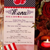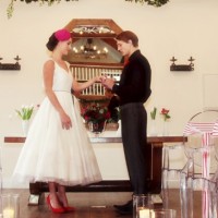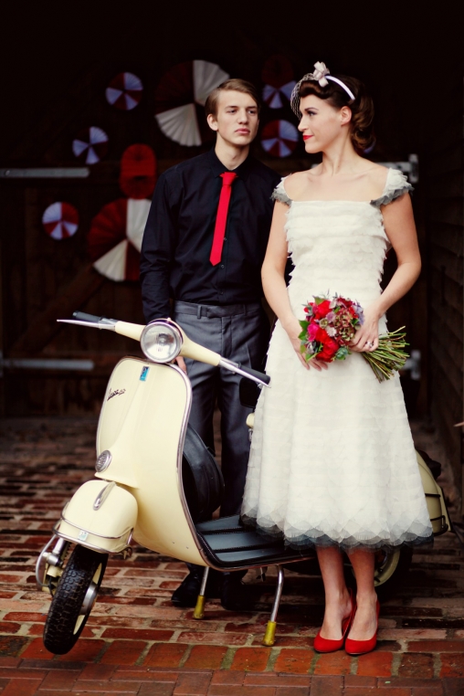 Dress your tabletops with bold red and crisp white blooms, stripy ribbons and red glassware. For sweet treats, think macaroons, candy canes, heart-shaped cookies and, naturally, cherry-topped cakes and tarts. Invite your guests to sup delicious colour-pop cocktails served in vintage glassware. And flirt wildly with '50s details. We're loving these vintage Vespas and '50s inspired frocks, not to mention the cute-as-a-button stationery!
