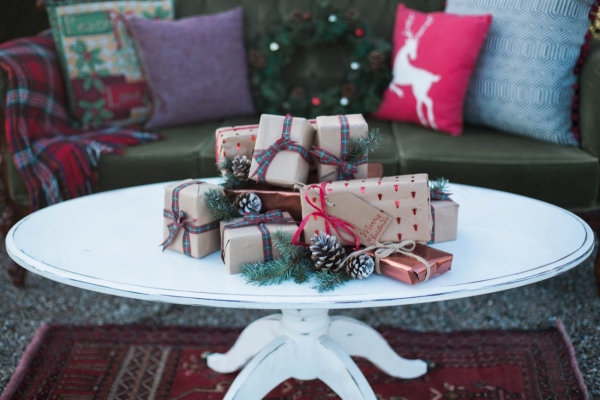 The comforting patterns of tartan, wood and wicker, the scent of festive gingerbread filling the air - you can almost hear the crackle of chestnuts and feel the warmth of the open log fire as you cast you eyes over this Christmas-themed wedding shoot by The Prop Factory.