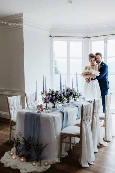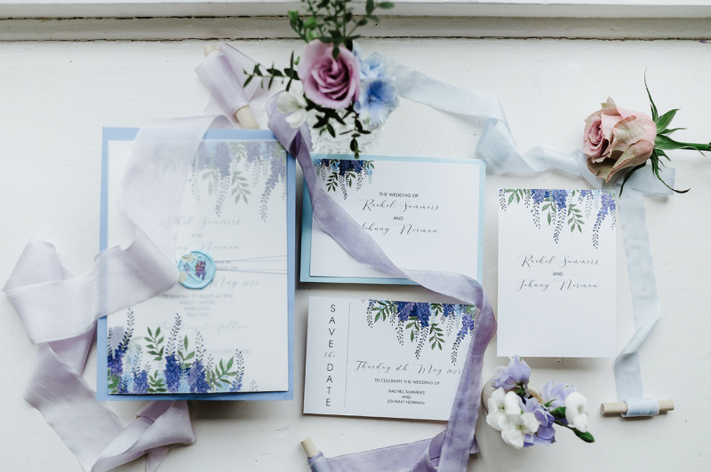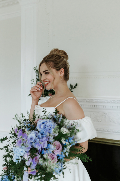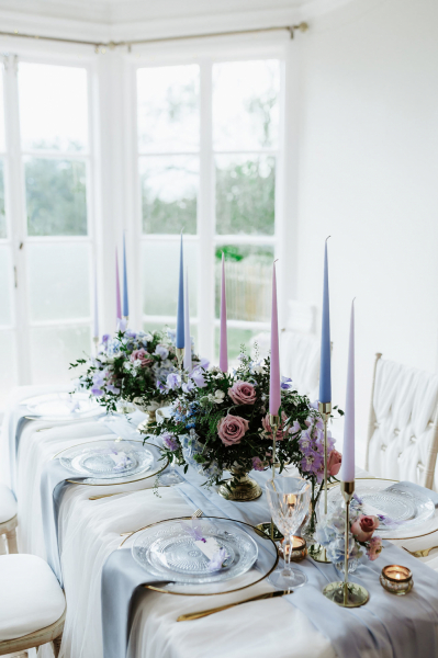 Weaving the gentle hues of lilac and pastel blue into fabulous floral arrangements was the starting inspiration for this styled shoot at Barley Wood, a picturesque wedding venue surrounded by stunning countryside views.