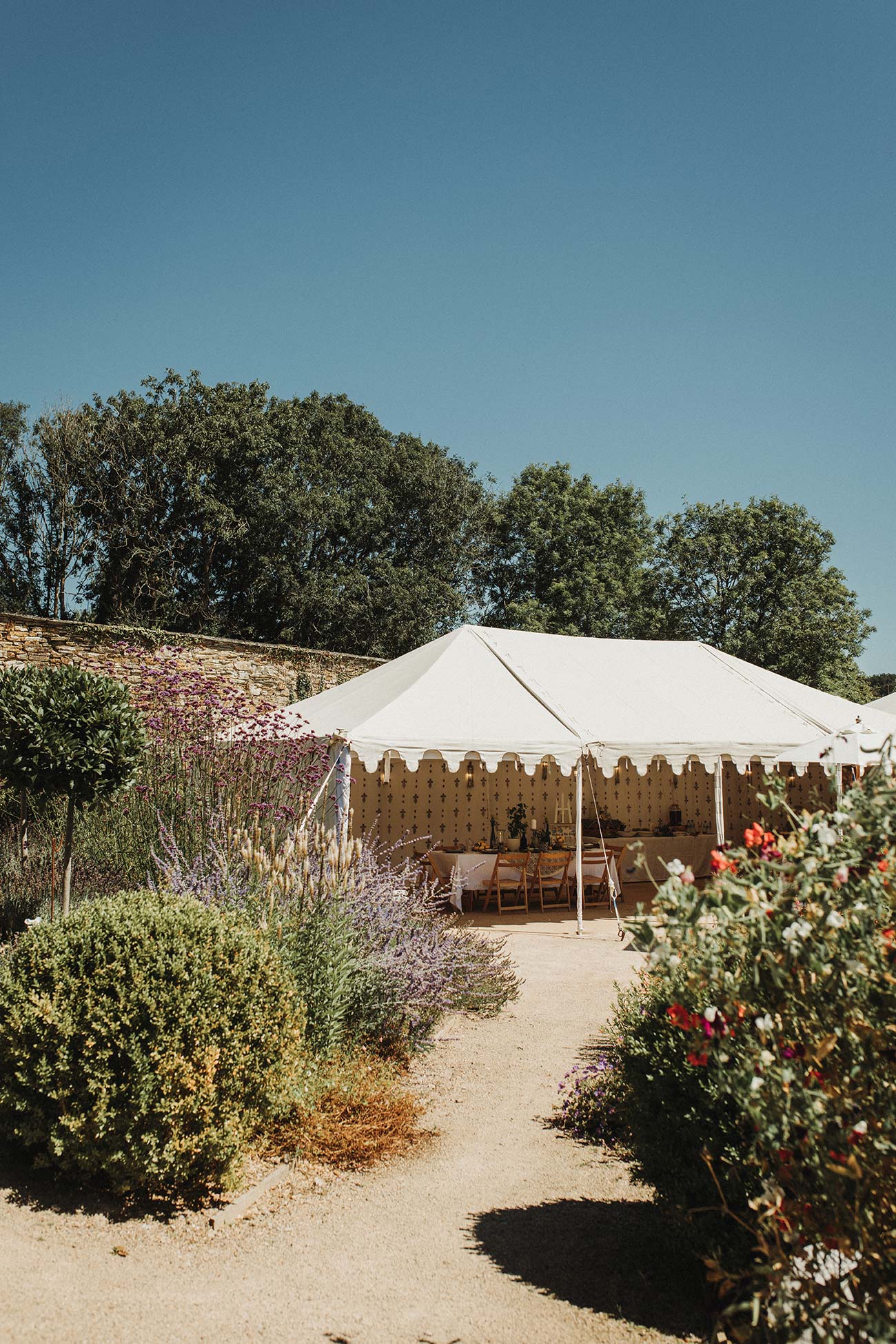 A tucked-away corner of Cornwall’s south coast, where meadows and wooded valleys slip down to the Helford River, is home to Carwinion House, a new exclusive-use wedding venue comprising breathtakingly beautiful gardens, expansive grounds and an 18th century country house. In this styled shoot, the venue’s Raj marquee, which nestles the walled garden with views across wildflowers, lakes and mature trees, is the canvas for a celebration immersed in the romance of summer.