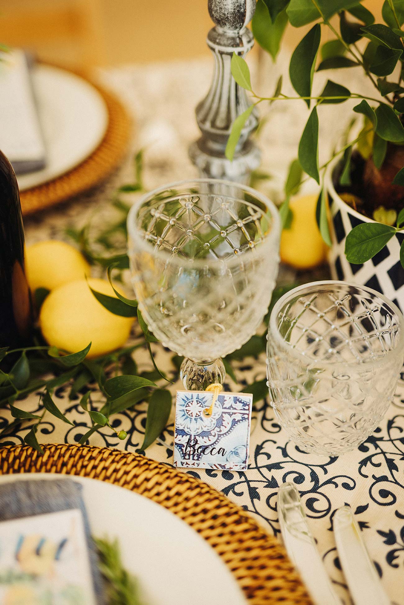 The Mediterranean accents continue with the bold prints, ceramic tile place settings and sweet flavour of limoncello – stirring the senses with a gorgeous medley of smells, tastes and textures, which makes the prospect of a relaxed summer celebration so alluring.