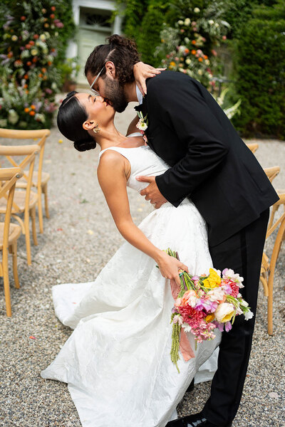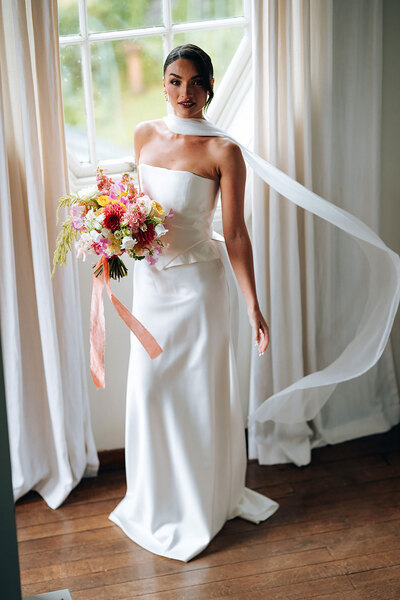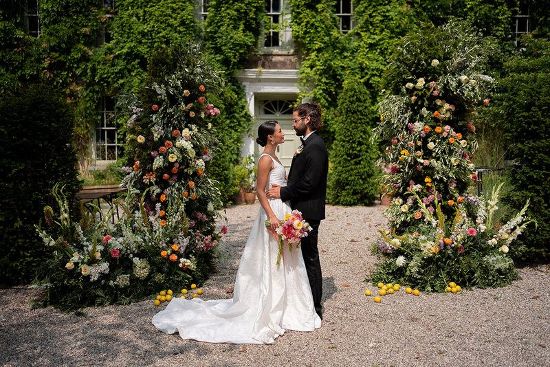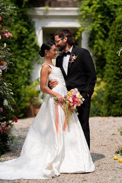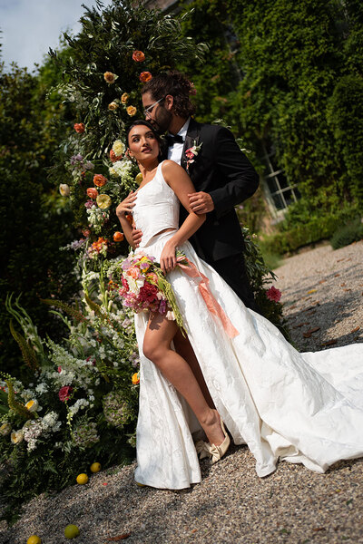 Bursting with colour, flavour and luxe fashion, this styled shoot channels the romance of Italy in the rural heart of Devon. Captured at The Lost Music Hall, a charm-filled elopement venue tucked into a secluded South Hams valley, the shoot evokes the effortless allure of the Mediterranean lifestyle with all the joy of a modern garden party wedding – grounded in timeless elegance.