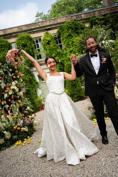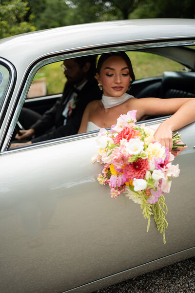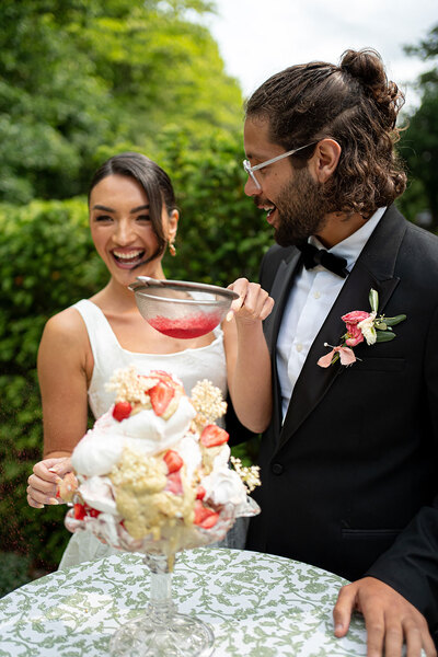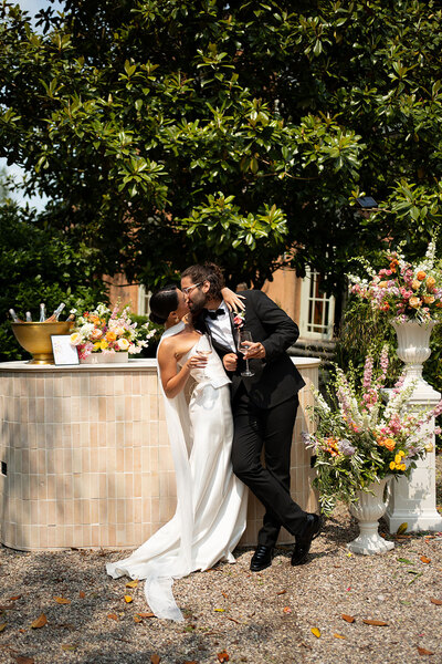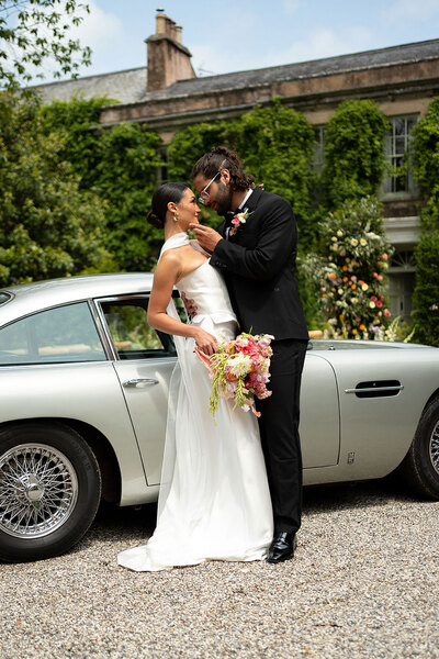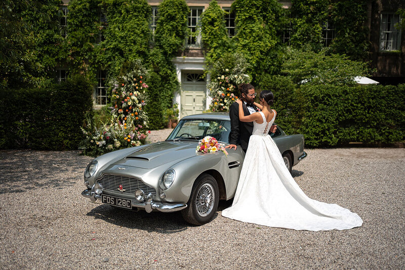 The timeline reimagines tradition with fresh twists: the couple getting ready together, an al fresco ceremony and drinks, followed by dinner under the open sky. In place of cake-cutting, tiramisu served playfully over the bonnet of an Aston Martin captures the romance, character and joy that defines this bold and beautiful wedding vision.