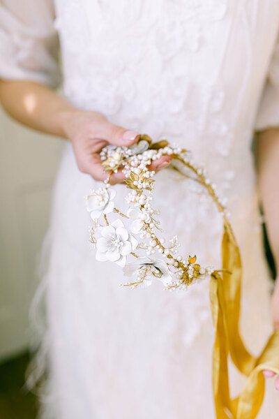Nestled in a secluded South Hams valley, this enchanting venue sits on the historic Great Ambrook estate. “At this luxury elopement venue near Totnes, there’s no such thing as one-size-fits-all,” says wedding planner and stylist Fern Godfrey who styled the shoot. “With orchards, walled gardens and a grand music room among its ceremony spaces, The Lost Music Hall is a truly bespoke offering.”