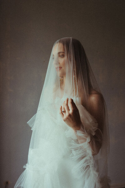 At once timeless and modern, the dresses carry the aesthetic of romanticism via soft silhouettes and sheer details. From the silk organza dress layered over a satin slip to the sculptural tiered dress combining a delicate bodice and pretty spaghetti straps, the bridal ensembles are given an ethereal edge with sheer bows and embellished veils.