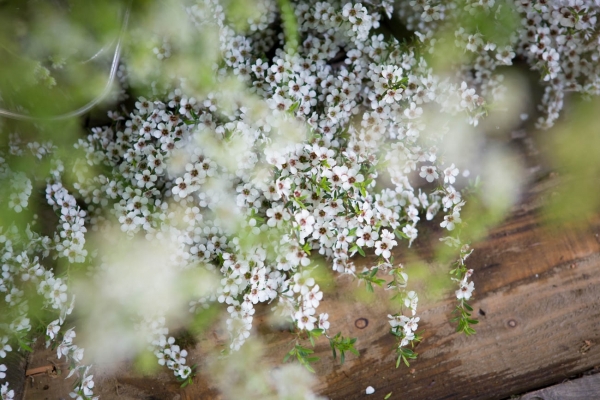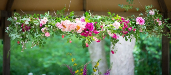 "We used garden flowers both cultivated and wild to create a heady-scented, deeply romantic feel, and both the central circle above the table and the boat bring a sense of soft movement on the breeze," say shoot organisers Vicki and Brigid of The Woodland Atelier, which brings sustainable eco-friendly ways to decorate events.