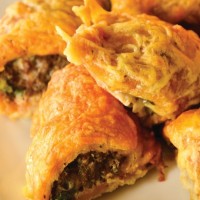 With a chive, sunblush tomato and chorizo mince pork, finished with a crispy Japanese crumb, served with a Dijon hollandaise