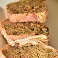 Lamb, redcurrant, red wine, mint and root vegetable baked bread pudding