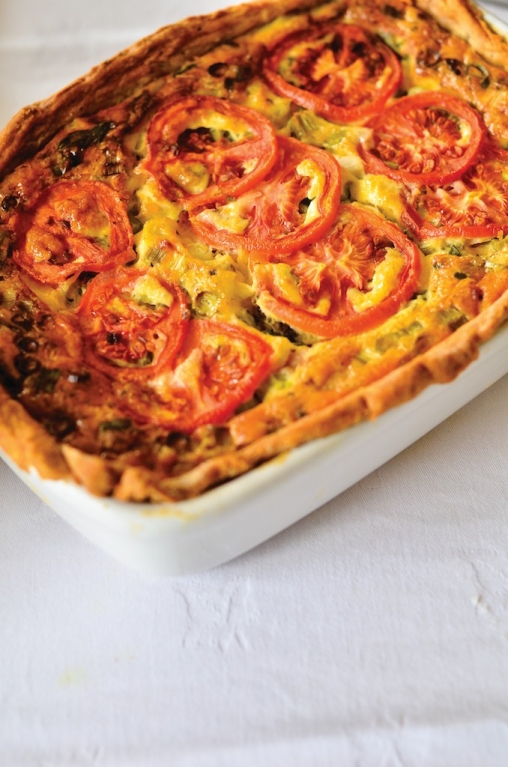Mature Cornish cheddar, spring onion and bacon tart slices