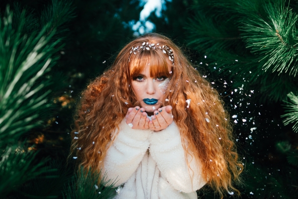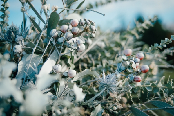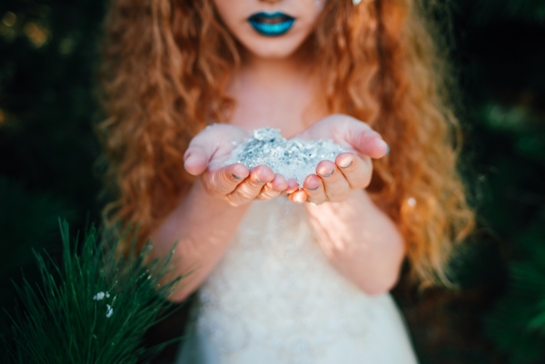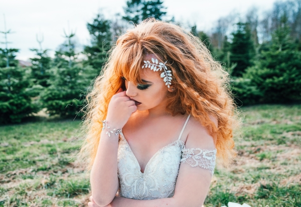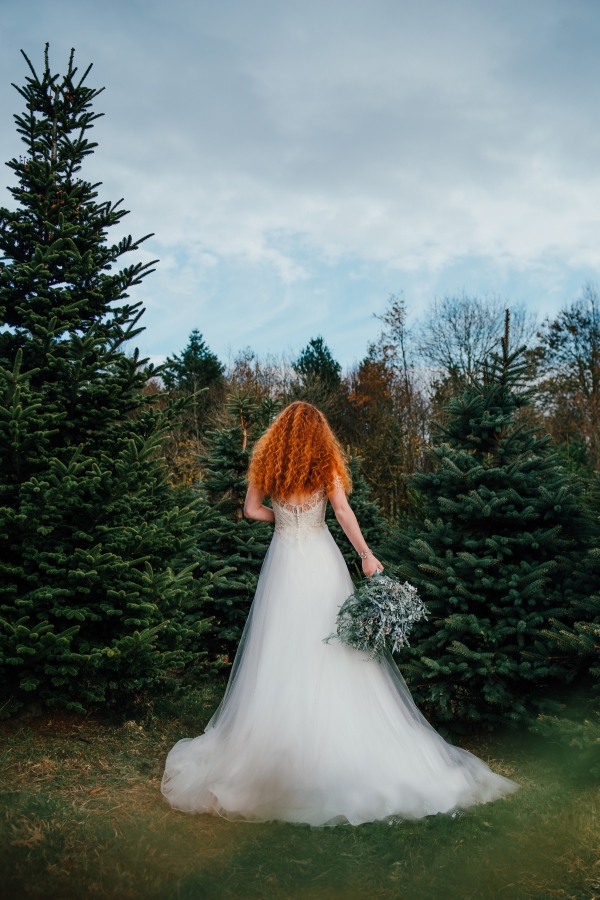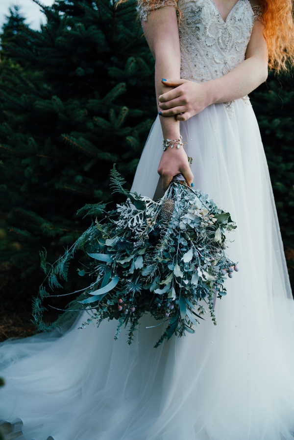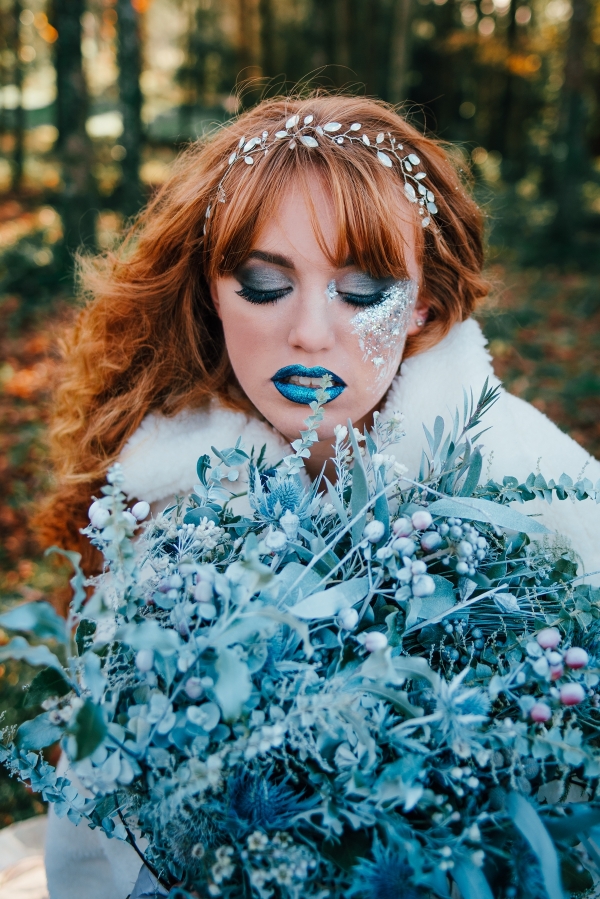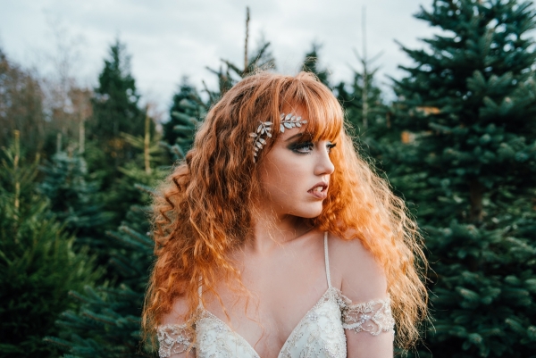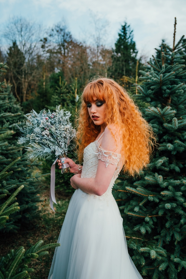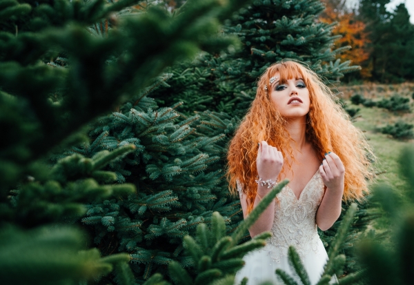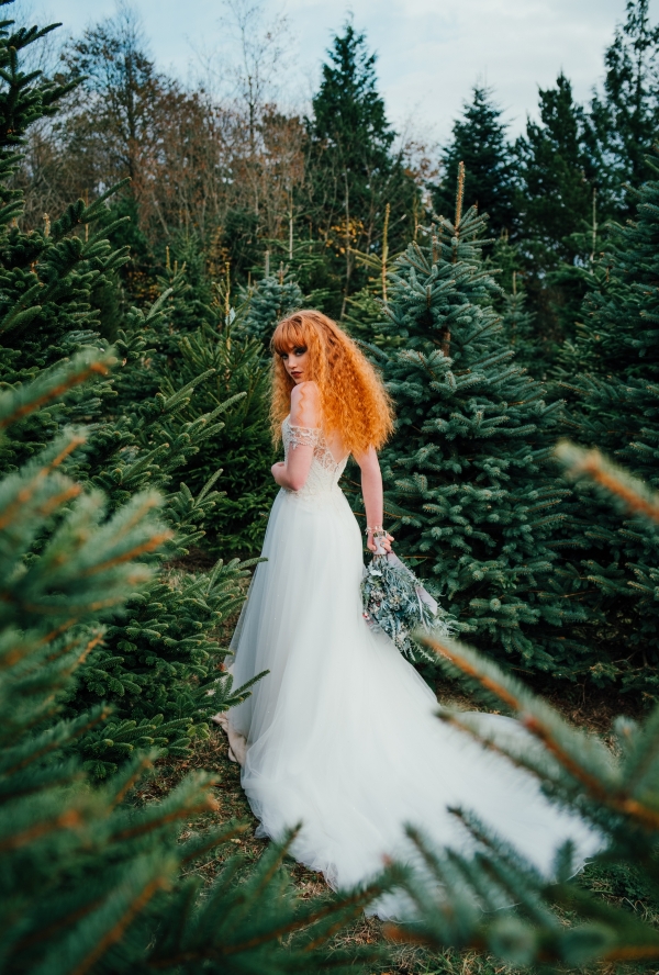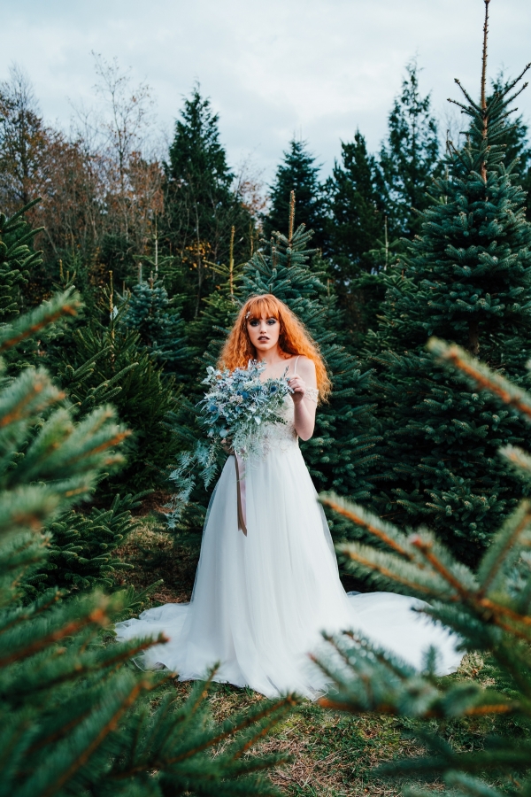 Shot at the subtropical, Tregothnan Estate, this paradoxically-themed 'Ice Queen' shoot took full advantage of its wild surrounds, using the estate's own flowers and captured amongst the Christmas Tree Field and surrounding areas to merge beautiful botanicals with a magical wintry feel.
