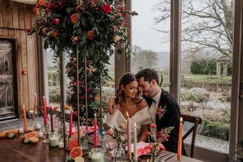 Deep colours, gold shimmers and handcrafted touches for a winter barn wedding