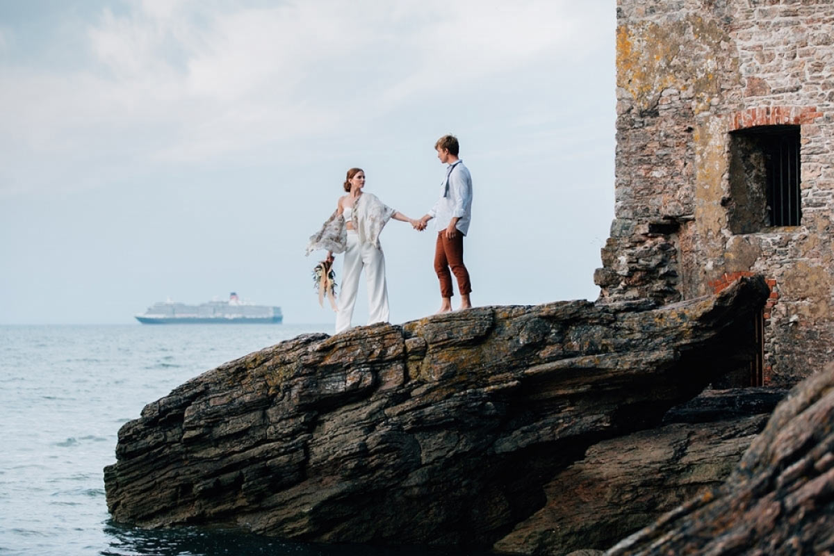 A secluded corner of the south coast makes a dream setting, while the craggy rocks and dramatic landscape is a perfect backdrop for the delicate beauty of the bride and her beau. Showcasing handcrafted treasures of Devon artisans, it's a truly delightful elopement wedding shoot, captured perfectly by Tristan Adams in this styled videography.